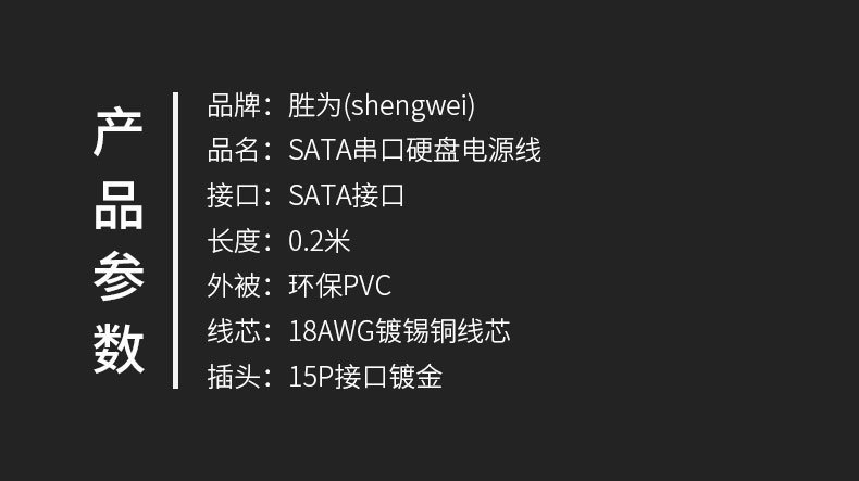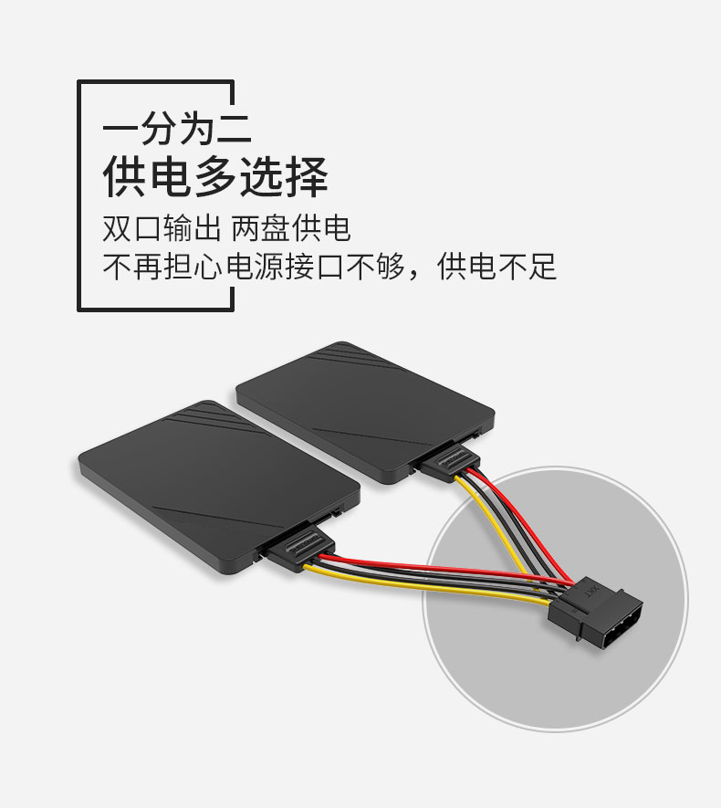 SATA電源轉(zhuǎn)接線 硬盤光驅(qū)供電線 勝為雙通道串口電源線大4Pin轉(zhuǎn)15Pin一分二延長線0.2米 SPC-202?