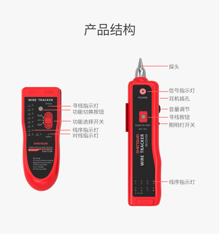 勝為網(wǎng)絡(luò)尋線儀 多功能測試儀查線器 電話線斷路短路尋線器音頻網(wǎng)絡(luò)網(wǎng)線巡線儀測試器 紅 NT-157