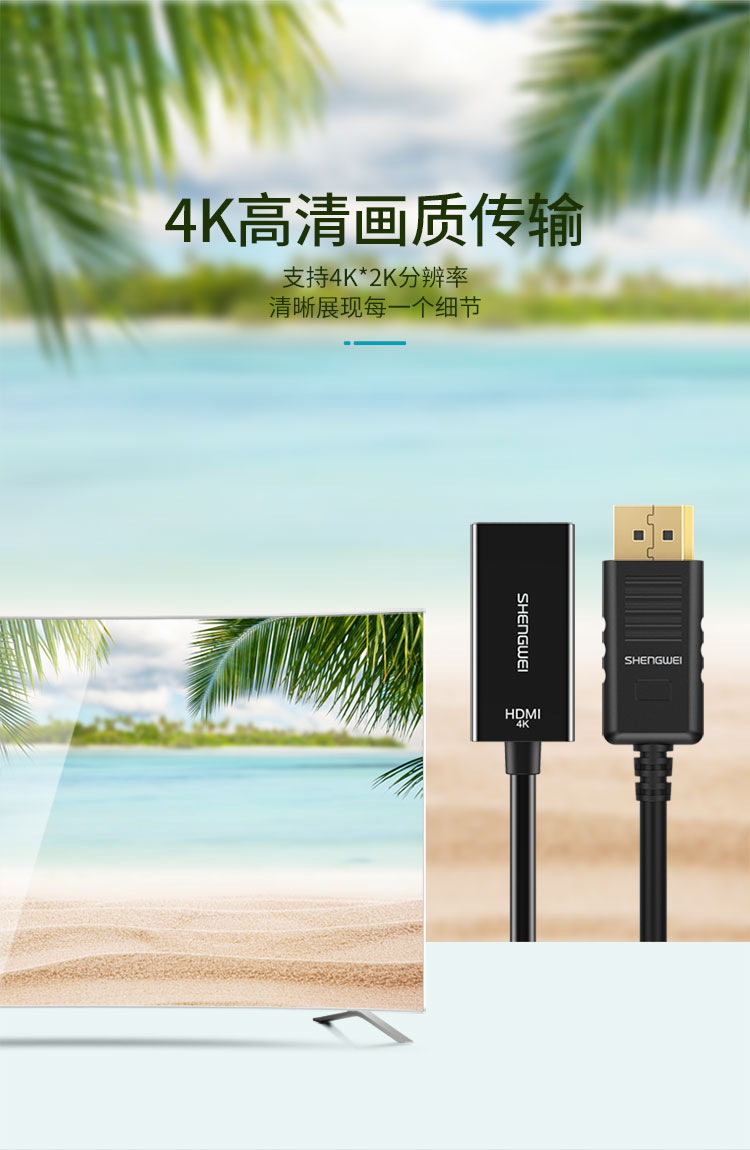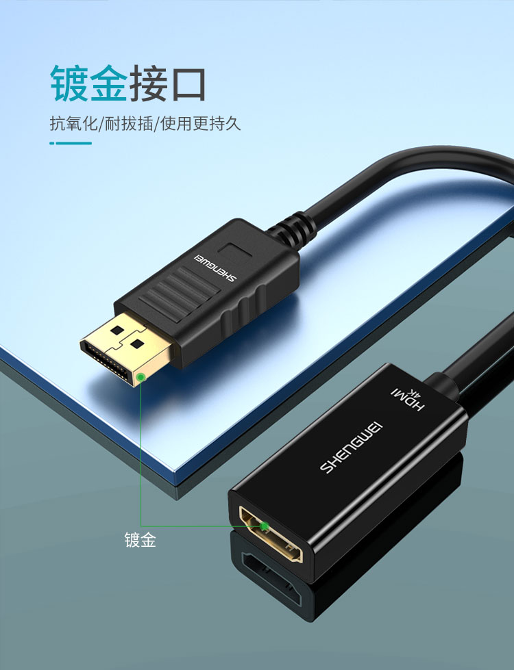 勝為DP轉(zhuǎn)HDMI轉(zhuǎn)換器 高清4K轉(zhuǎn)接頭 DisplayPort轉(zhuǎn)hdmi公對公 DP公轉(zhuǎn)HDMI母-4K高清 0.2米 MN-8004