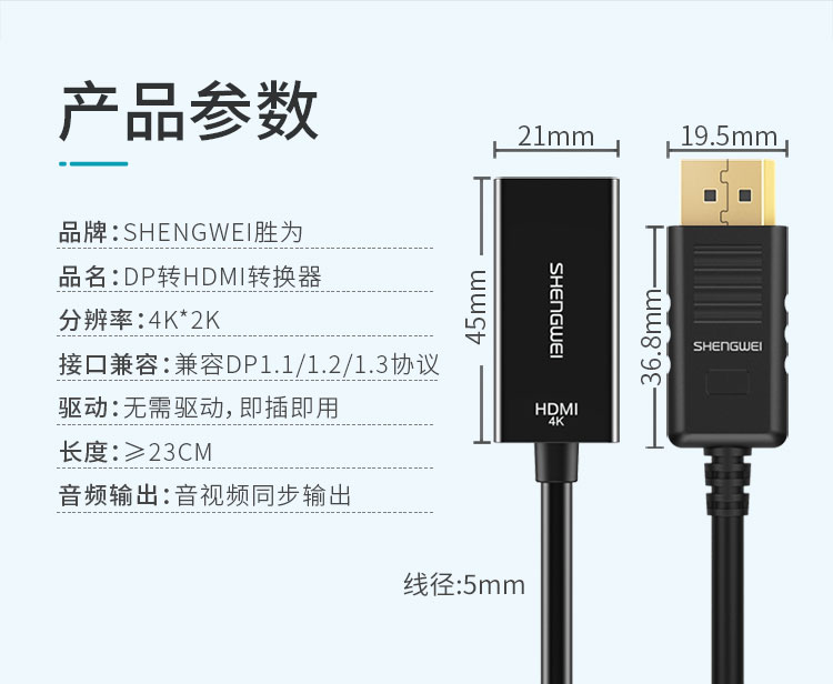 品名: DP轉(zhuǎn)HDMI轉(zhuǎn)換器