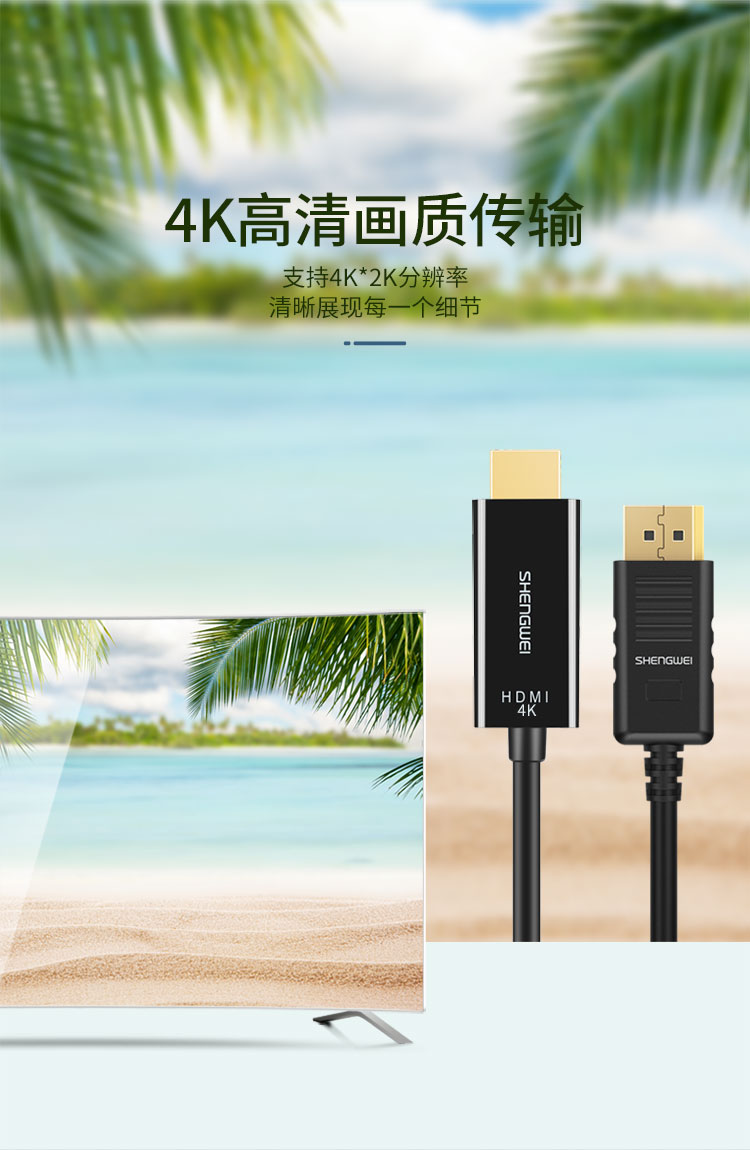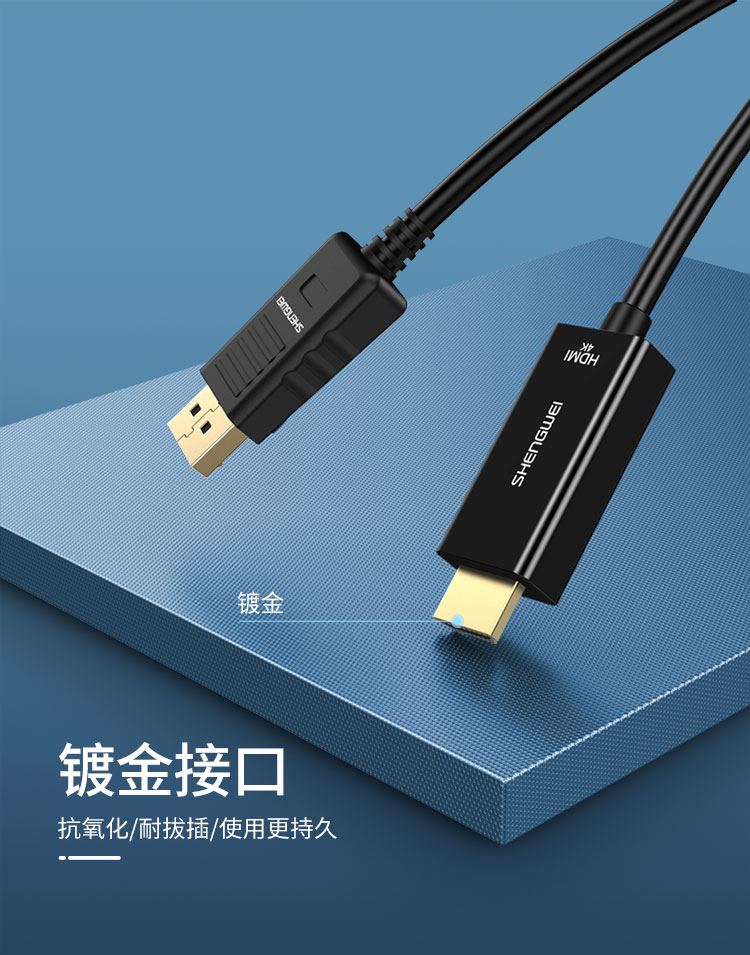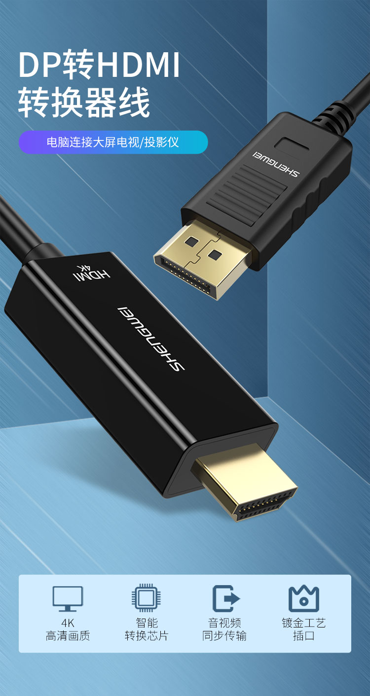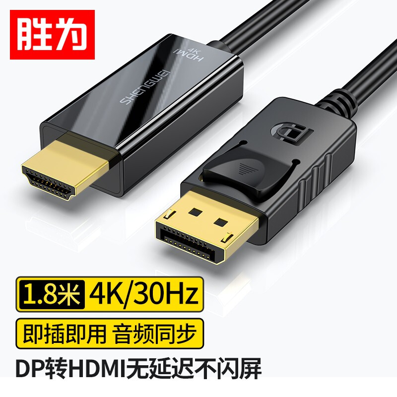 勝為DP轉(zhuǎn)HDMI轉(zhuǎn)換器 高清4K轉(zhuǎn)接頭 DisplayPort轉(zhuǎn)hdmi公對公 DP公轉(zhuǎn)HDMI公-高清4K 2米 MN-7020B