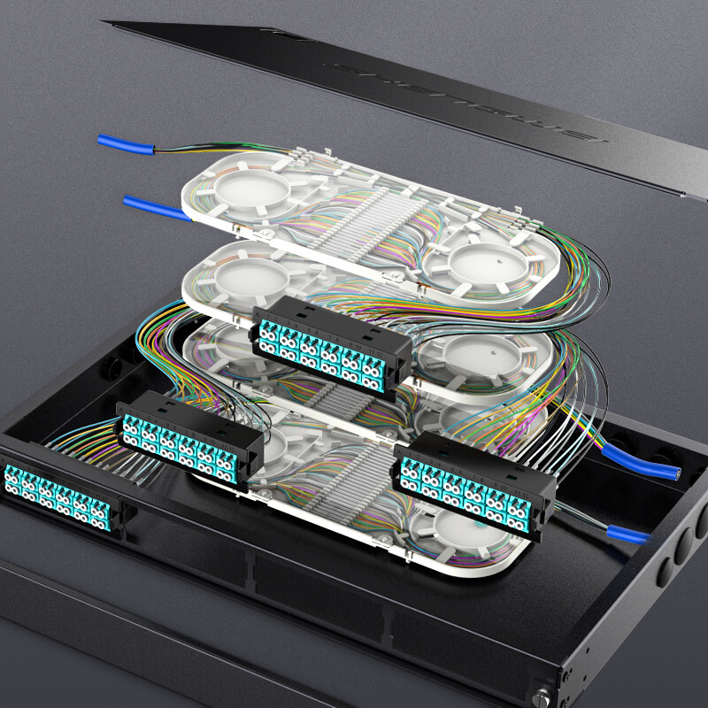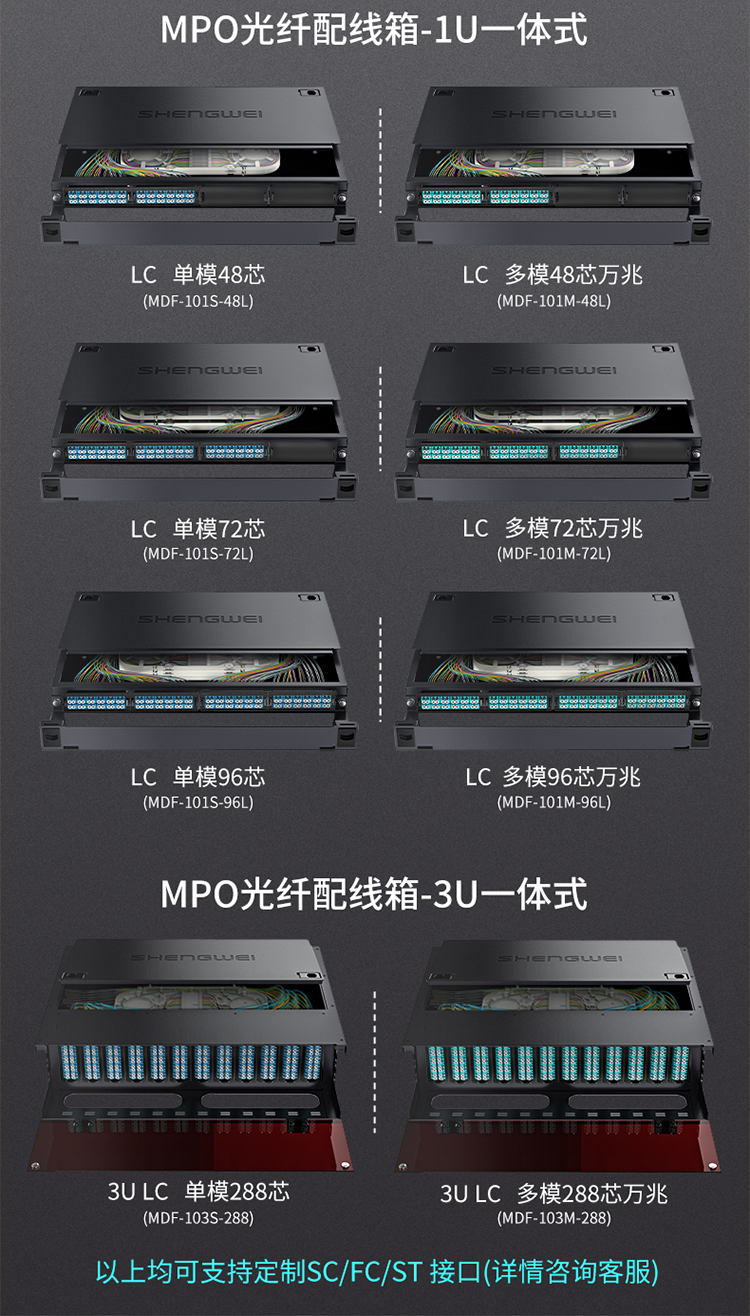 MPO-MTP光纖配線箱 96芯LC多模滿配 勝為萬兆OM3高密度光纖續(xù)接盤配線架熔接分線箱 MDF-101M-96L
