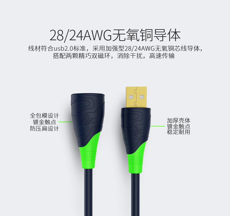 品名:勝為(shengwei)公對母鍍金雙磁環(huán)數(shù)據(jù)延長線