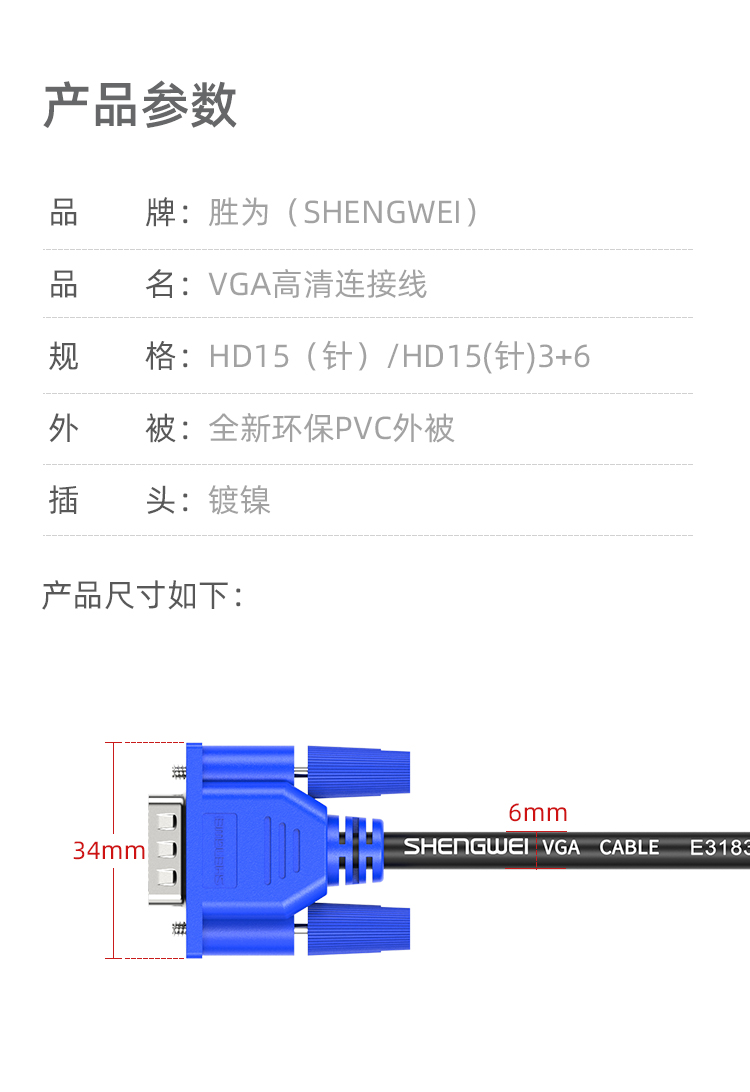 品名:勝為藍(lán)頭3+6VGA信號(hào)連接線(xiàn)