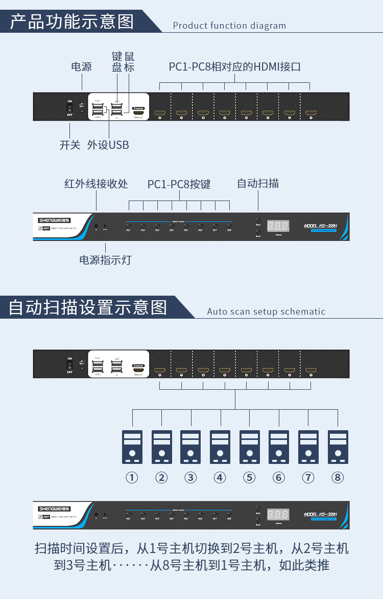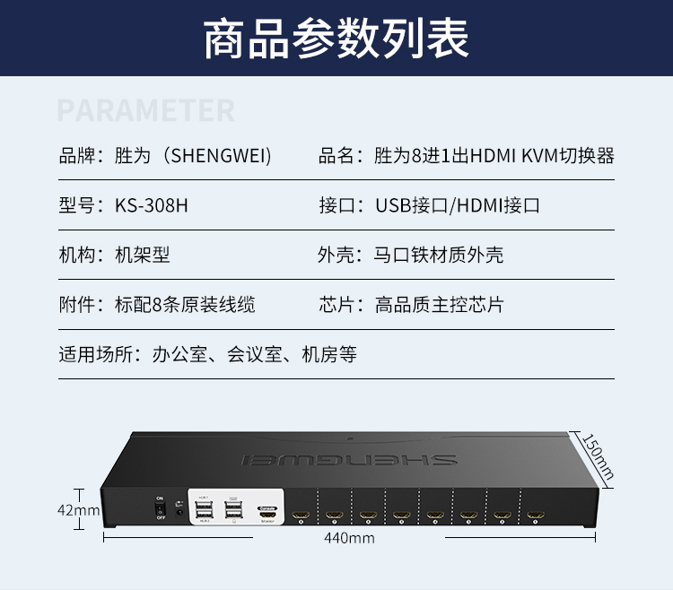 8口KVM切換器 8進1出HDMI高清視頻切屏器 勝為KS-308H