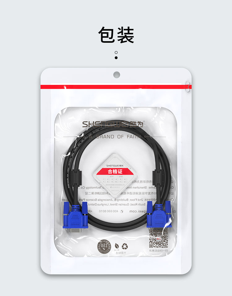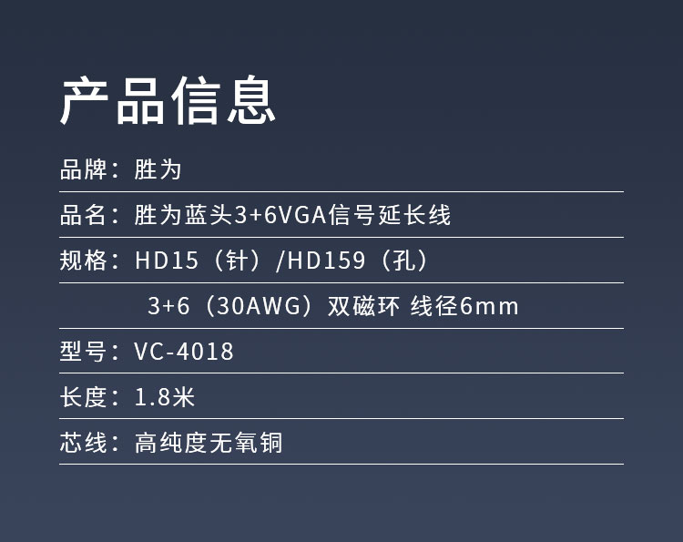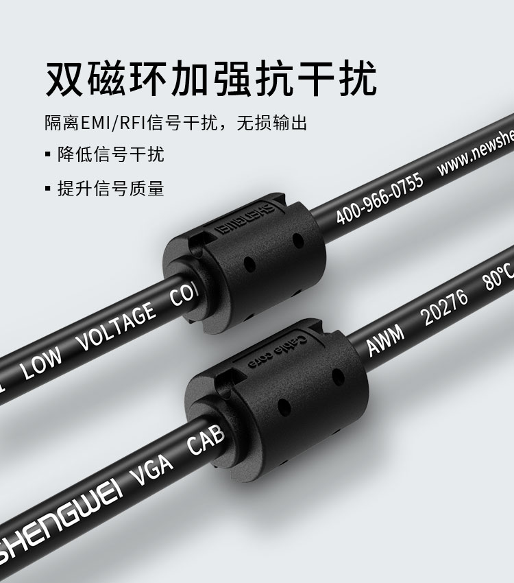 勝為VGA線 公對母高清延長線 3+6雙磁環(huán) 電腦電視顯示器投影儀視頻連接線 1.8米 VC-4018