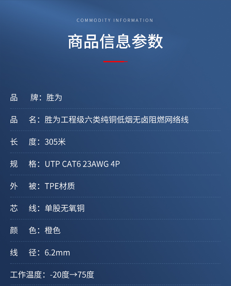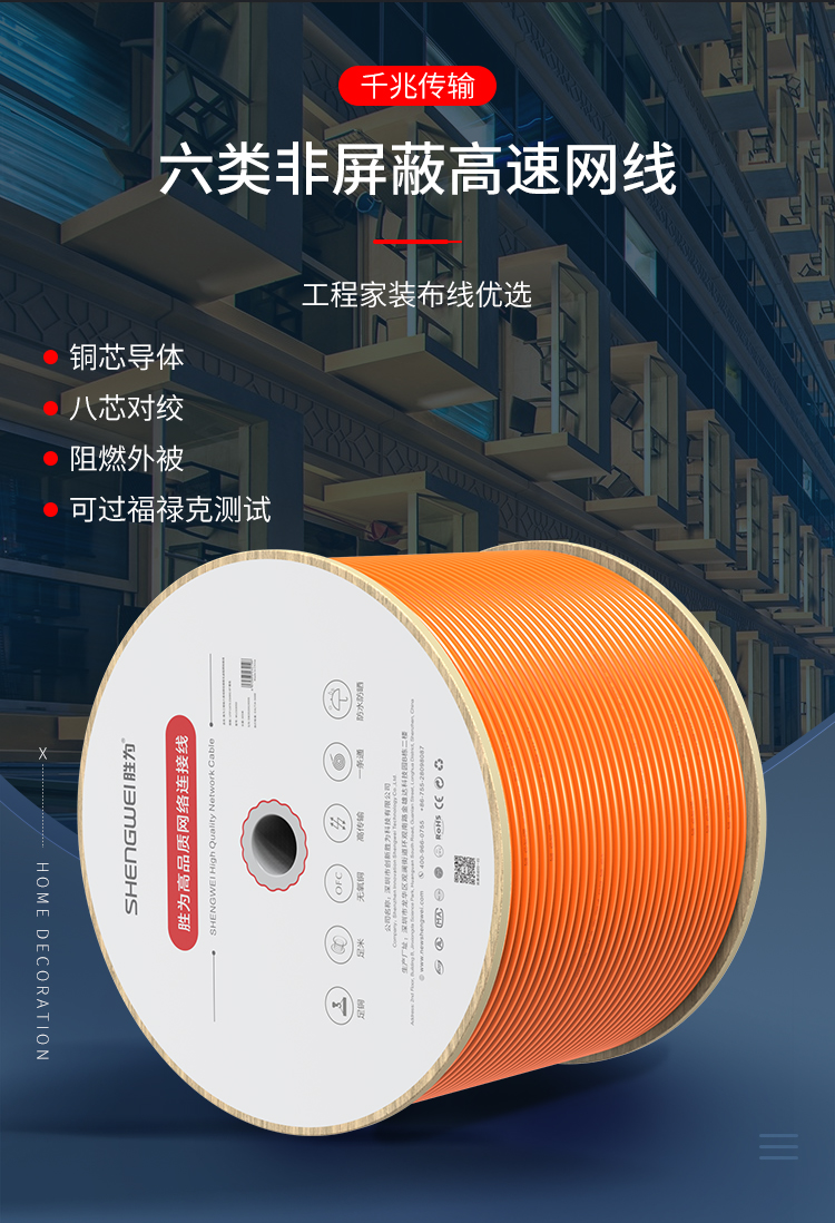 品名:勝為工程級六類純銅低煙無鹵阻燃網(wǎng)絡(luò)線