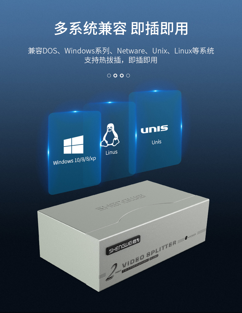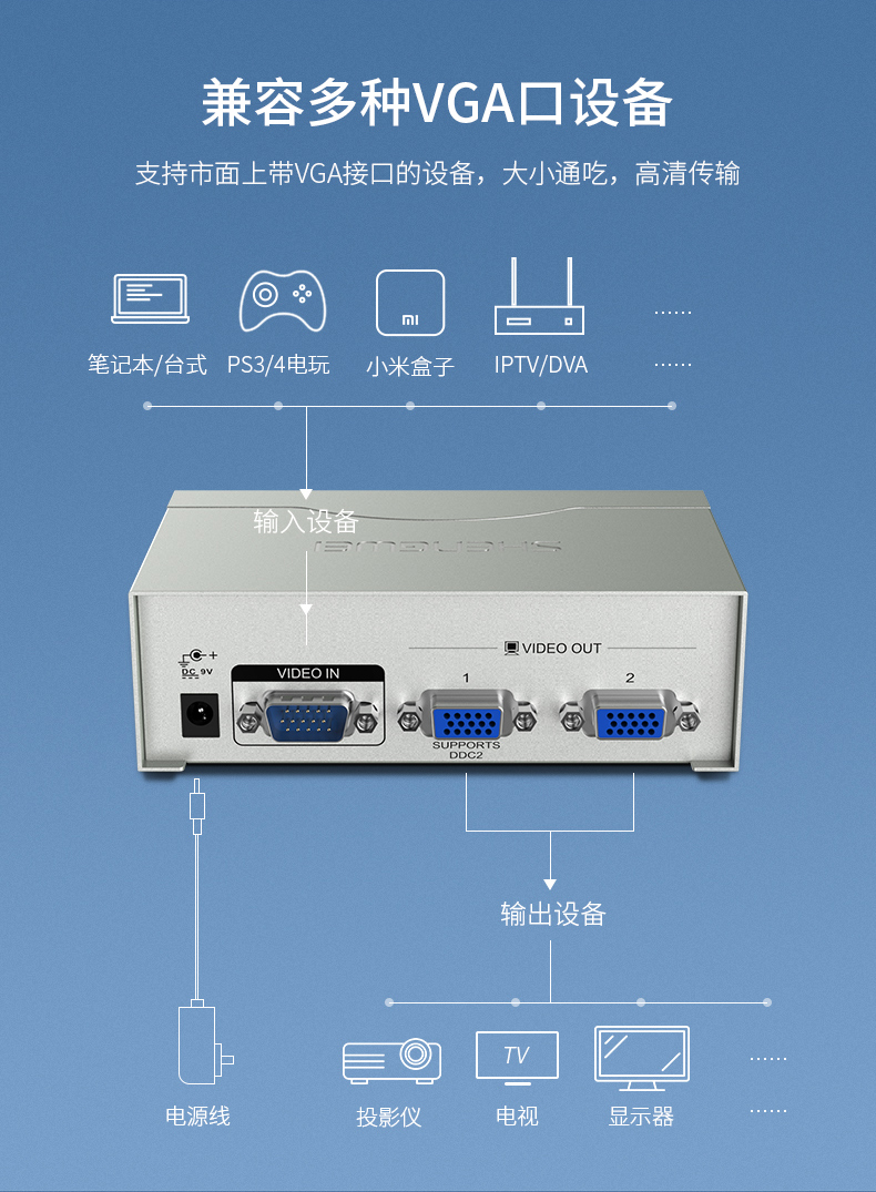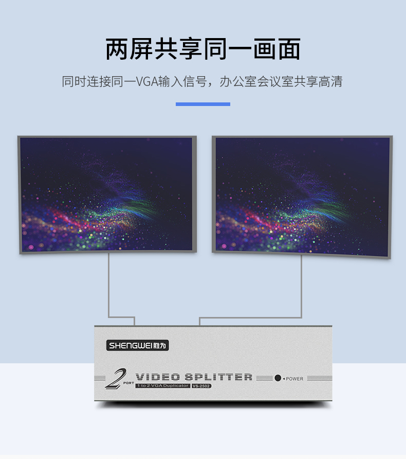 勝為1進(jìn)2出VGA分配器 VGA一分二分配器一進(jìn)二出筆記本電腦投影儀顯示器分屏器?VS-2502