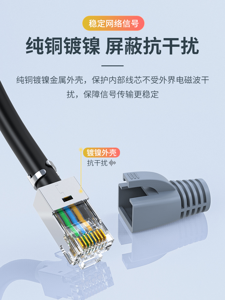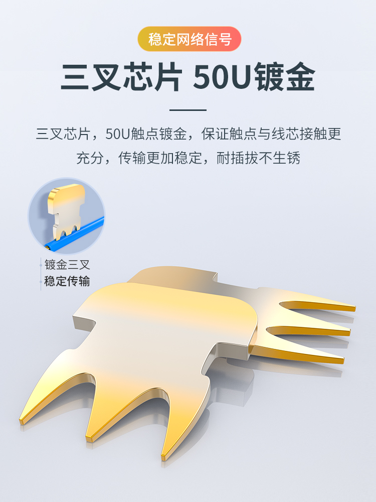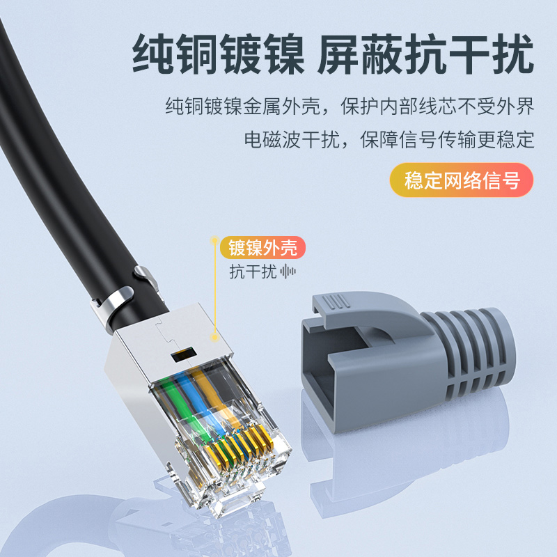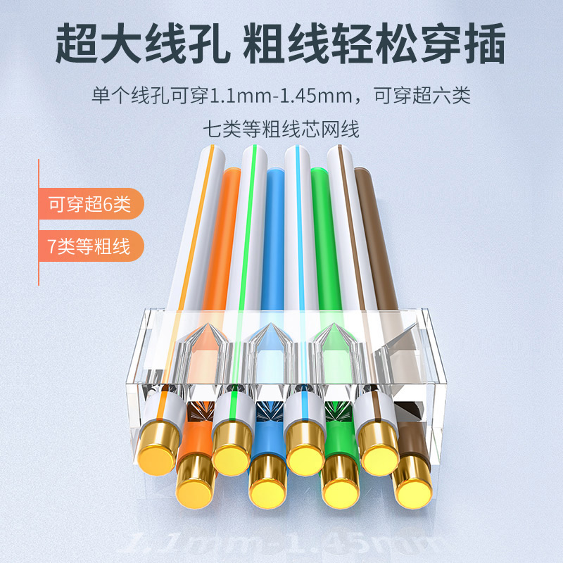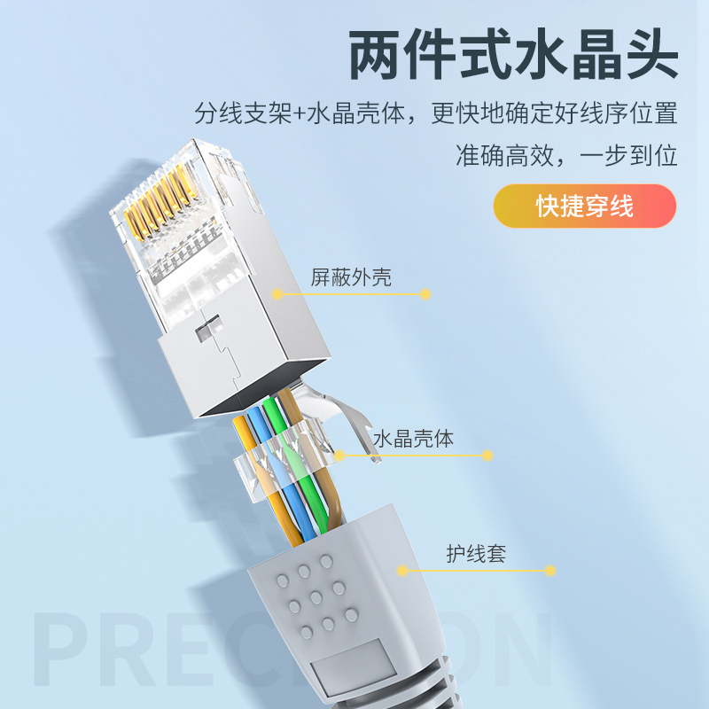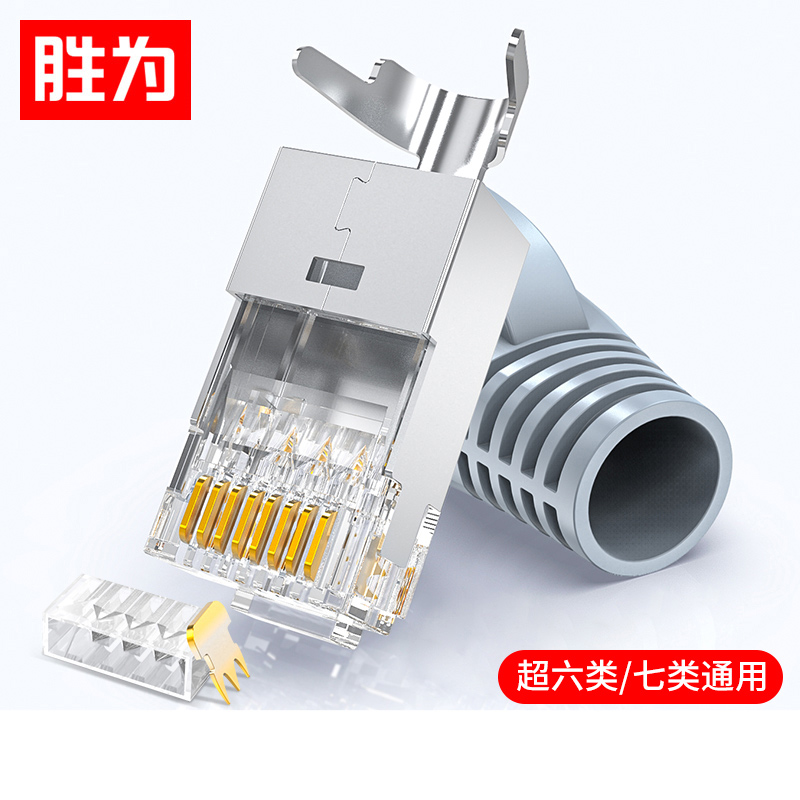 八類屏蔽水晶頭 2個裝 勝為萬兆兩件式純銅RJ45超六類七類50U鍍金接頭 帶燕尾夾WRC75002