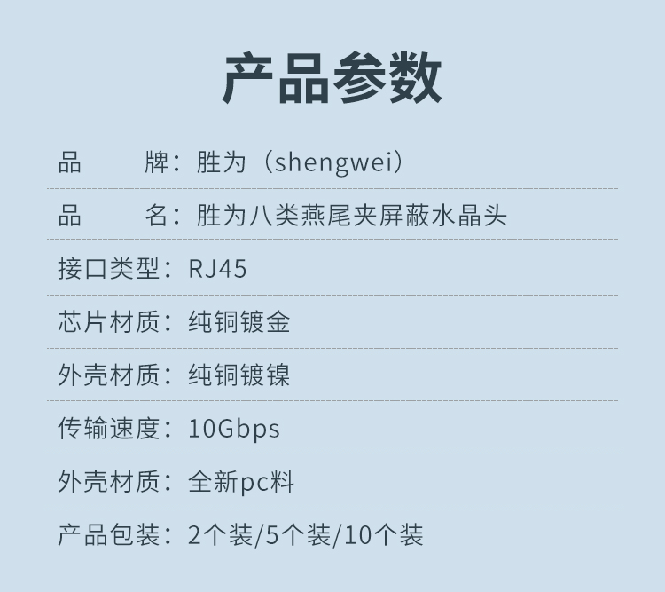 品名:勝為八類燕尾夾屏蔽水晶頭