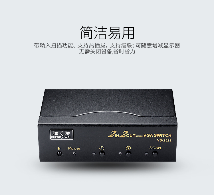 勝為VGA二進(jìn)二出切換器 帶遙控 2進(jìn)2出視頻分配器共享器 高清顯示器共享器 VS-2522
