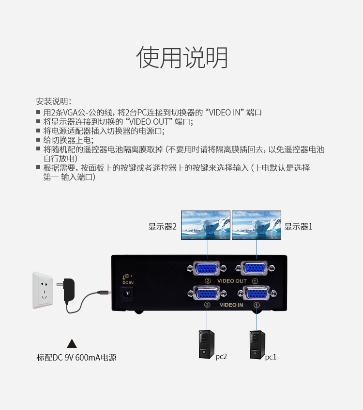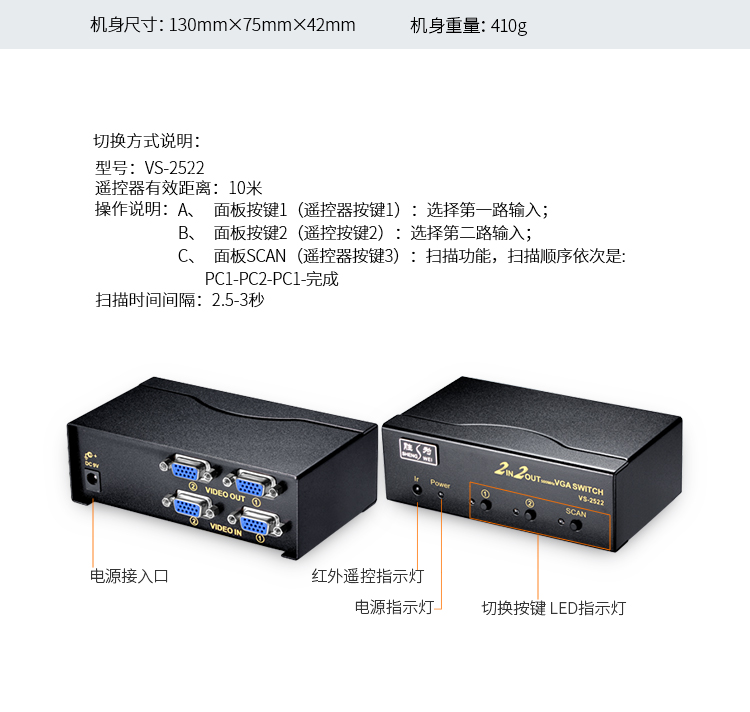 品名:勝為(shengwei) VGA VGA2進(jìn)2出切換器 帶遙控