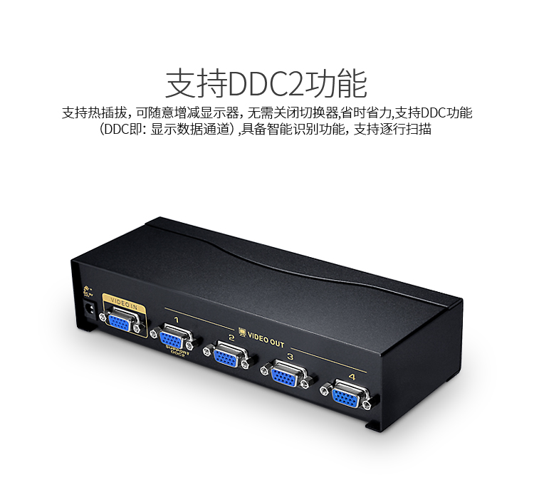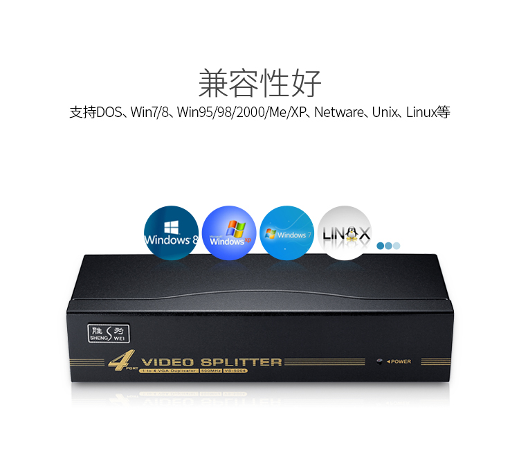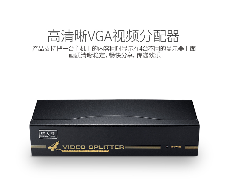 勝為VGA一分四分配器 4口配原裝線 500MHZ電視電腦屏幕轉(zhuǎn)換視頻分頻 VS-5004