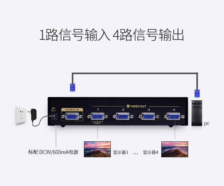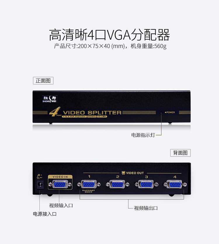 品名:勝為(shengwei)4口 vga分配器