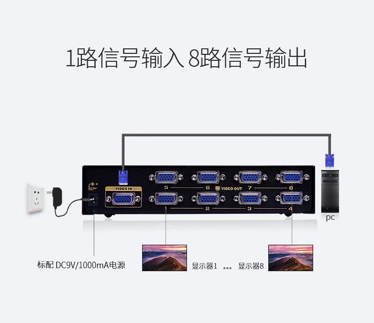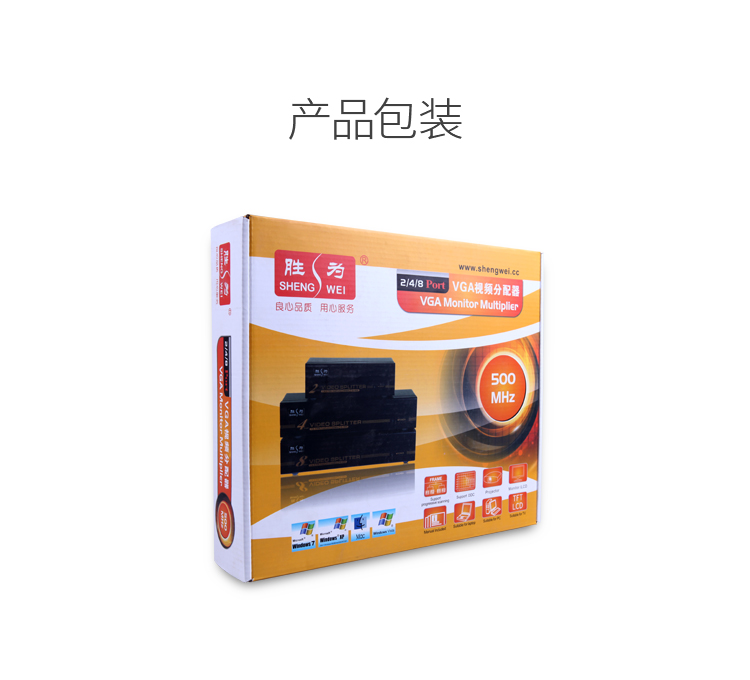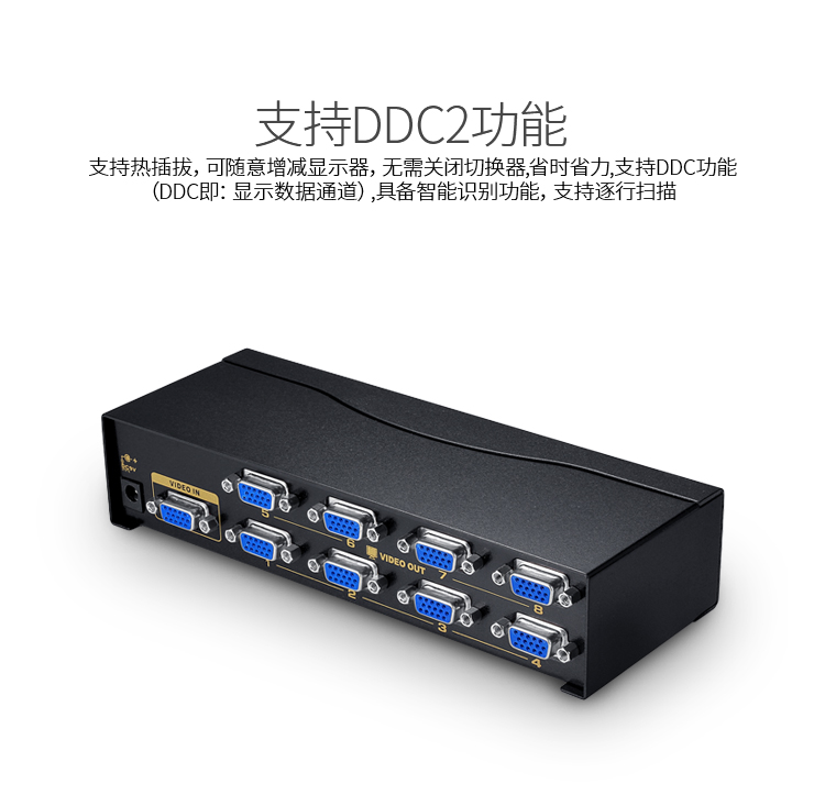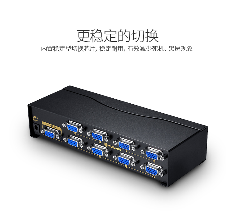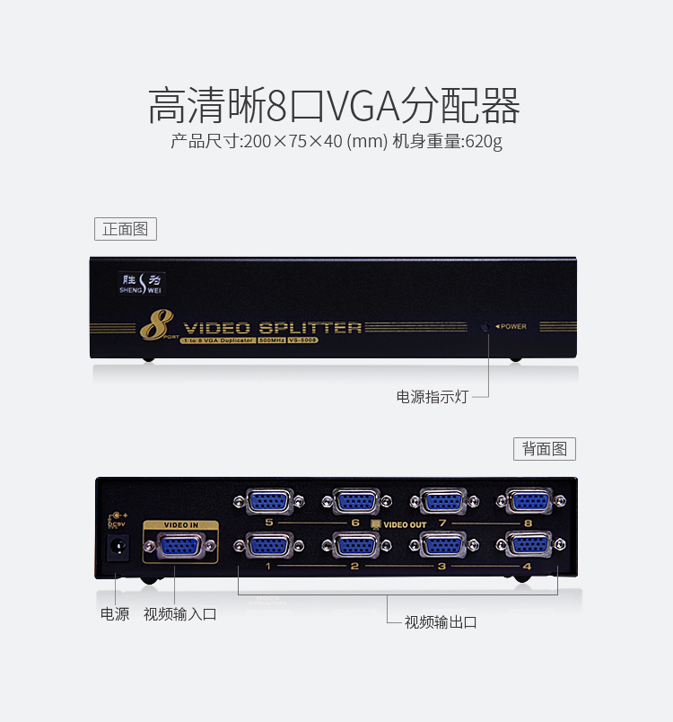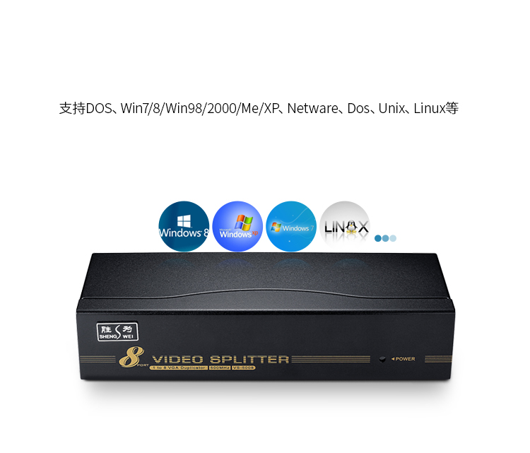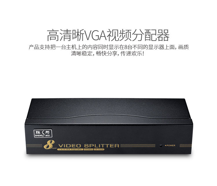 勝為VGA一分八分配器 8口配原裝線 500MHZ電視電腦屏幕轉(zhuǎn)換視頻分頻 VS-5008