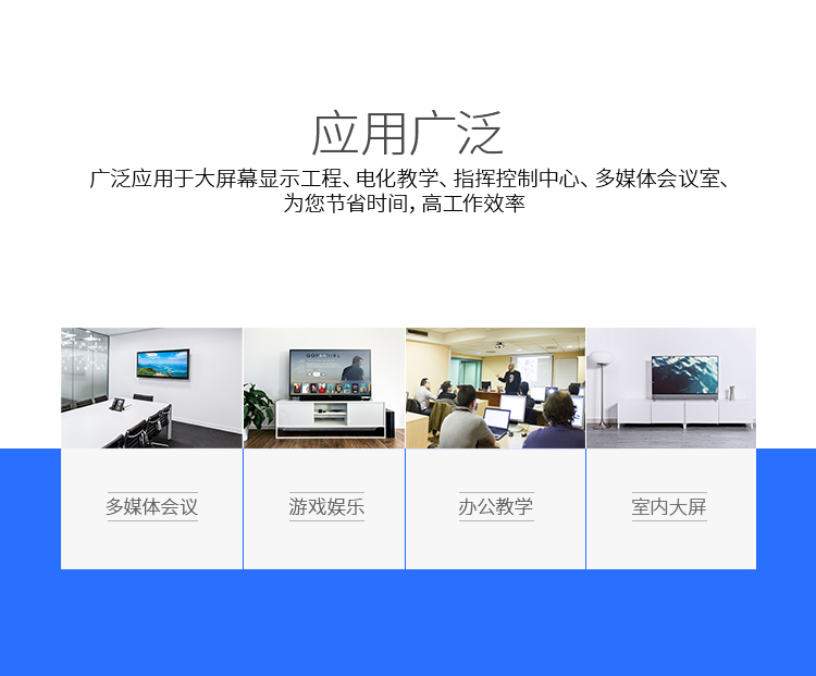 應(yīng)用:辦公,機(jī)房,演播室,會議監(jiān)控,音視頻管理等