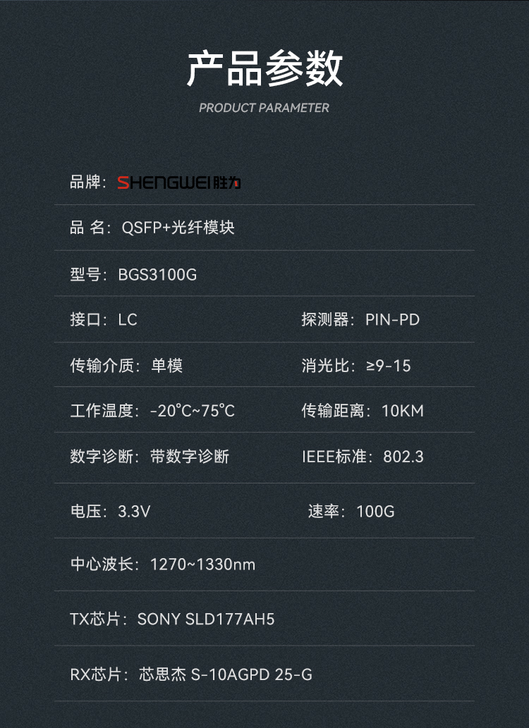 QSFP28光模塊 100G單模雙纖萬兆 (1310nm,10km,LC)兼容華為/中興 BGS3100G