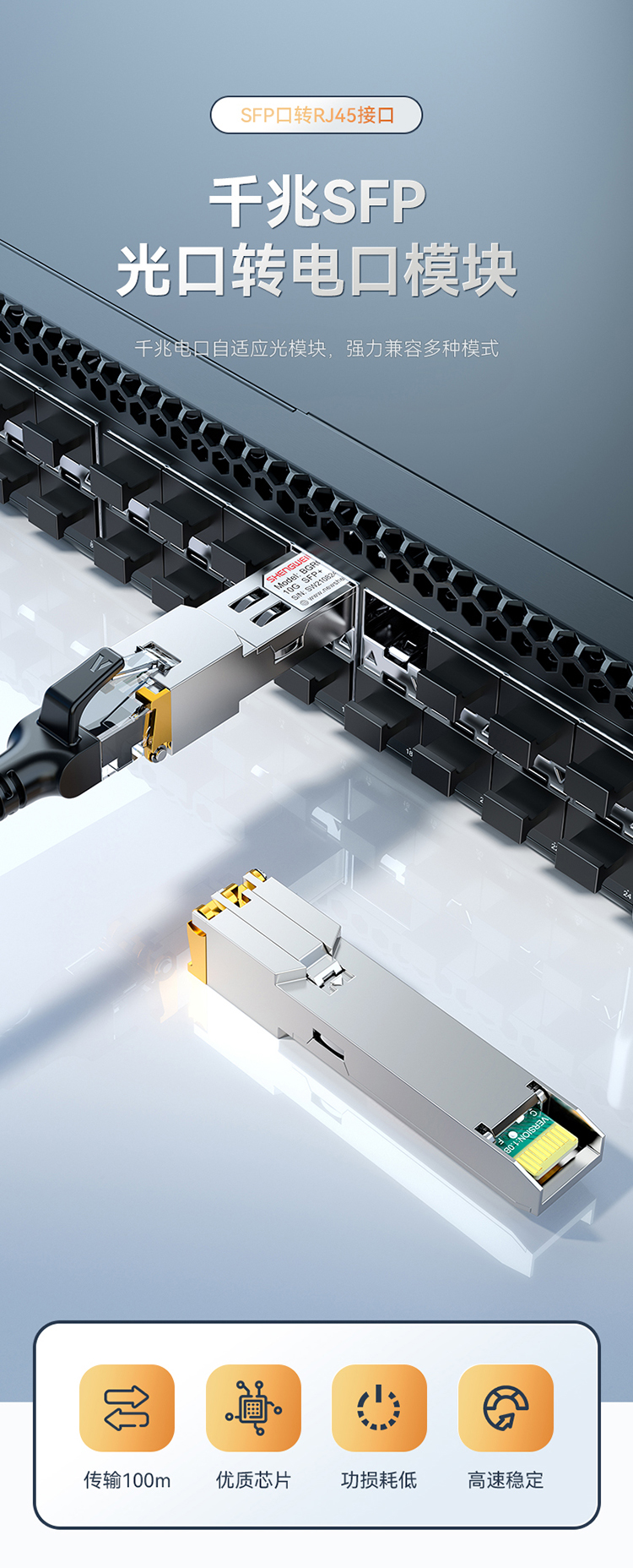 勝為千兆電口模塊SFP 光口轉(zhuǎn)電口模塊RJ45
