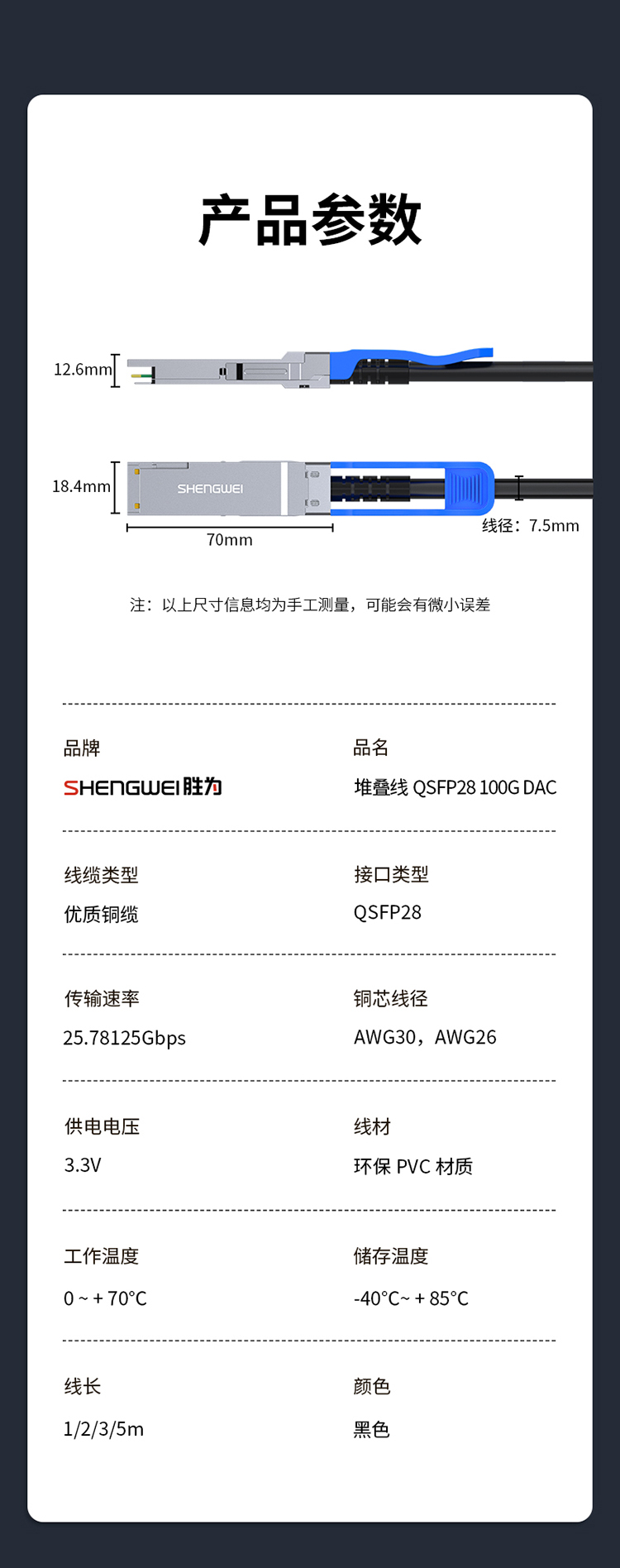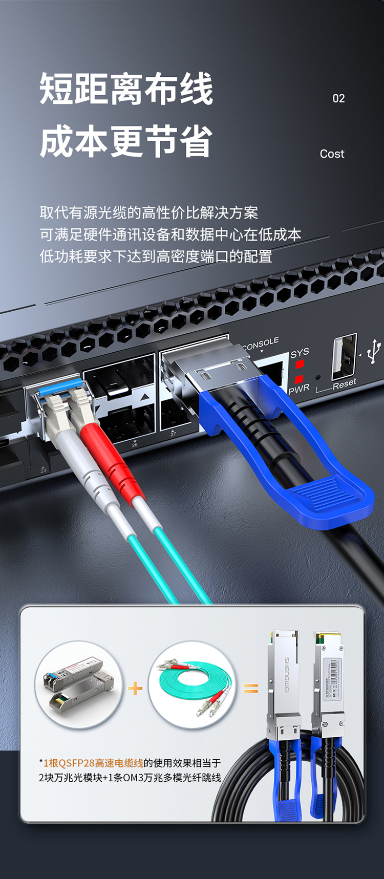 勝為高速電纜QSFP28 DAC堆疊線萬兆100G高速線纜光模塊 支持華為思科H3C曙光浪潮中興2米 XDAC0502
