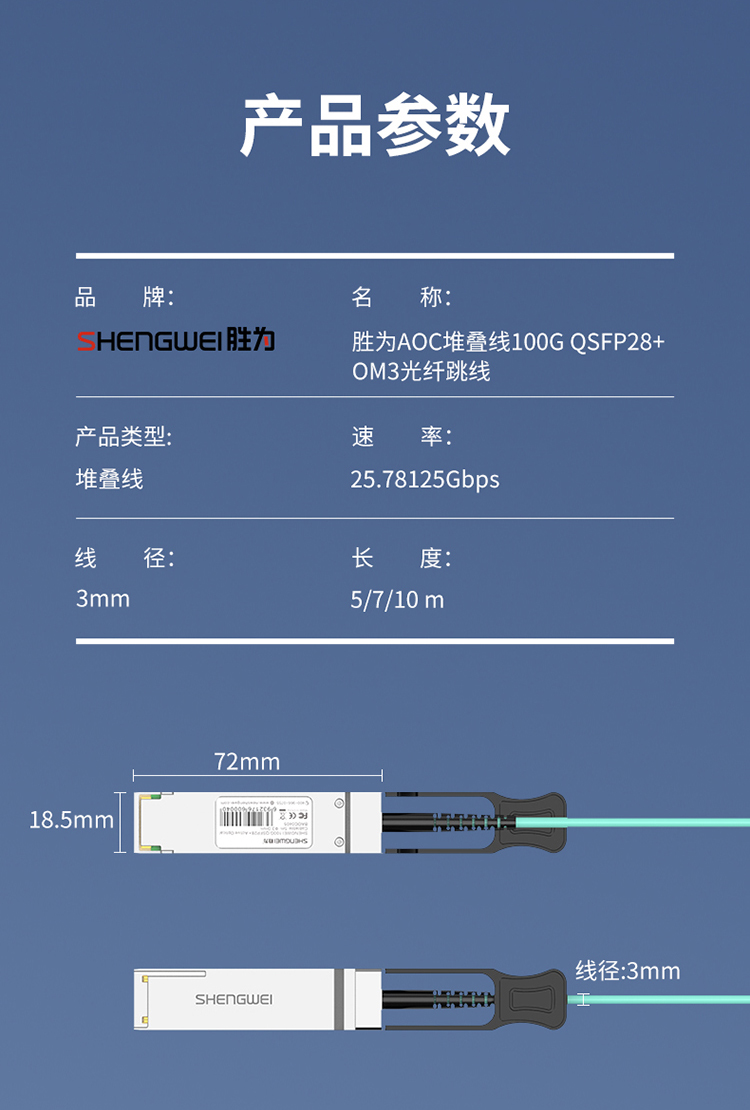 高速電纜QSFP28 AOC光纖堆疊線 萬兆100G有源直連光纜5米 通用華為H3C思科曙光等 BAOC0405