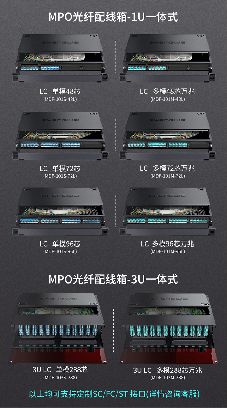 MPO-MTP配線(xiàn)箱48芯LC多模滿(mǎn)配 萬(wàn)兆OM3高密度光纖續(xù)接盤(pán)配線(xiàn)架熔接分線(xiàn)箱 MDF-101M-48L