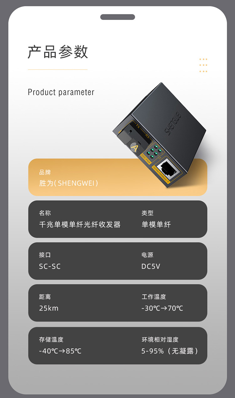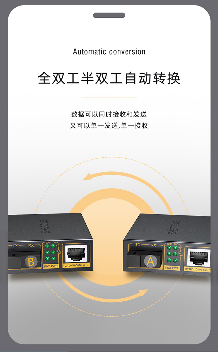 千兆單模單纖 一對裝 25KM 勝為SC口自適應(yīng)光纖收發(fā)器 FC-211AB