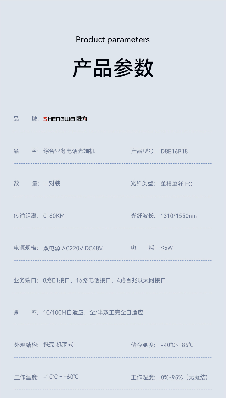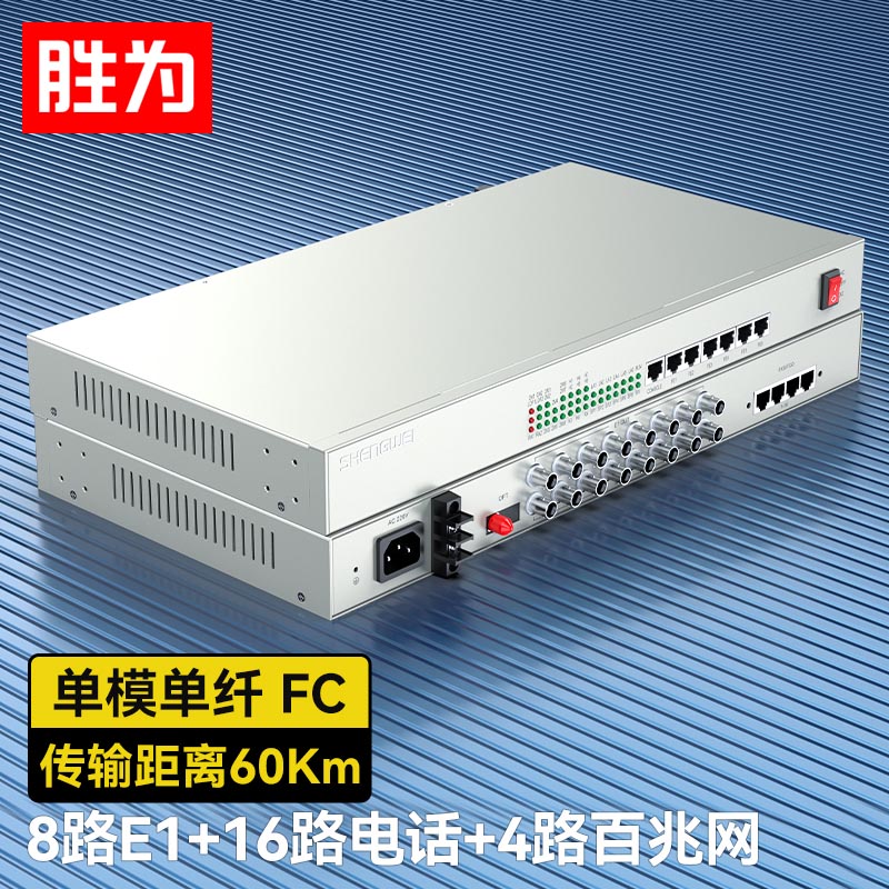 8路E1+16路電話+4路百兆網絡 綜合業(yè)務電話光端機 PCM語音光端機 60KM FC單纖桌面式 一對 D8E16P18