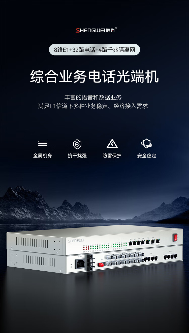 業(yè)務端口:8路E1+32路電話+4路千兆隔離網絡