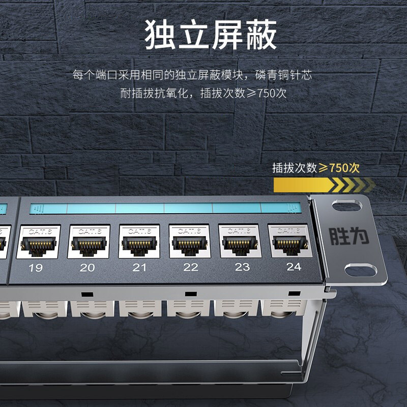 六類24口配線架 CAT6類工程級(jí)屏蔽模塊1U機(jī)架式機(jī)柜工程網(wǎng)絡(luò)跳線理線槽 WNDF624G
