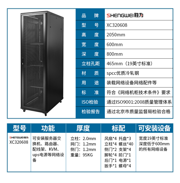服務器機柜2米標準42U 寬600深800 帶pdu電源 弱電監(jiān)控UPS交換機網(wǎng)絡機柜 XC320608
