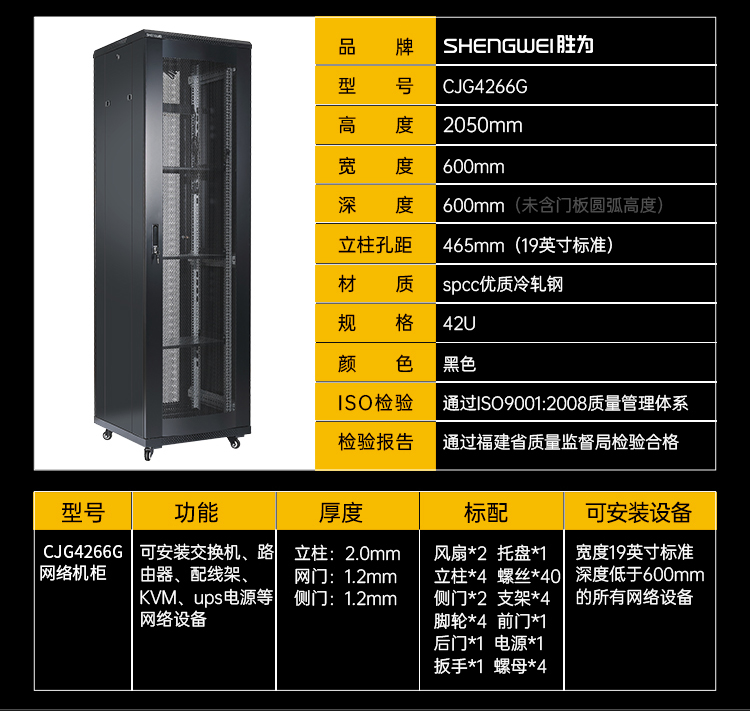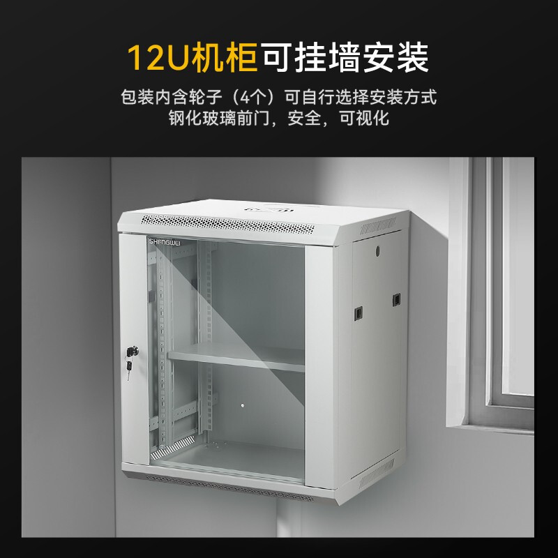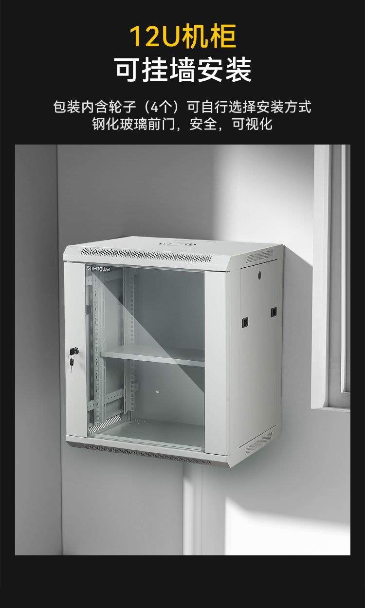 網(wǎng)絡機柜42U 加厚網(wǎng)絡服務器機柜 壁掛監(jiān)控弱電交換機柜圓弧網(wǎng)孔門 黑色 CJG4266G