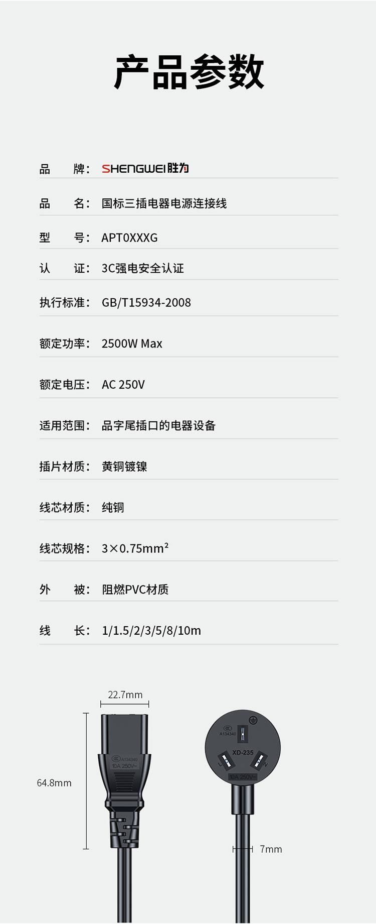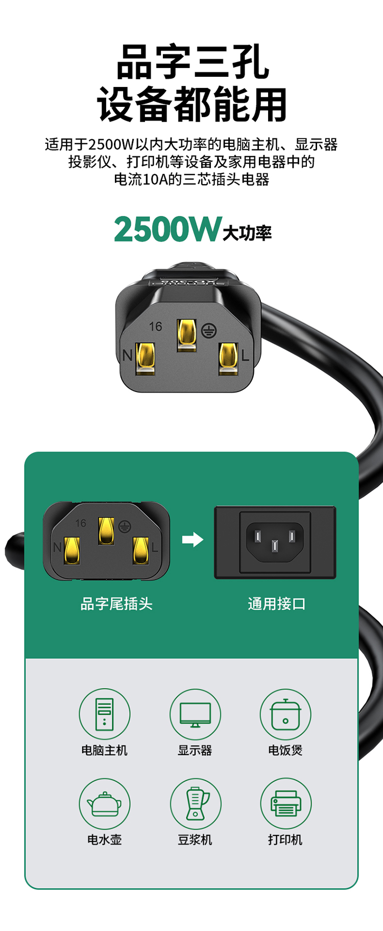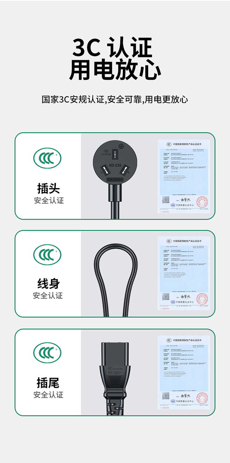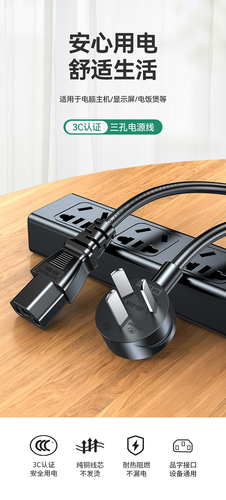 國標(biāo)三芯品字尾電源線 3c認證 適用臺式機電腦顯示器主機電飯煲打印機1米 1-10米 APT0010G