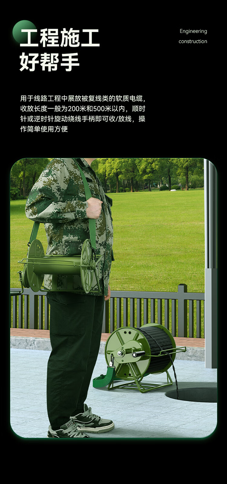 野外輕型被復(fù)線 背負式絡(luò)車 放線盤繞線車放線架 絡(luò)車架 1比3齒輪款230*230 CBFC230B