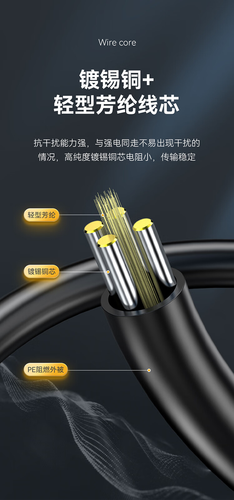 芯線:鍍錫銅+輕型芳綸