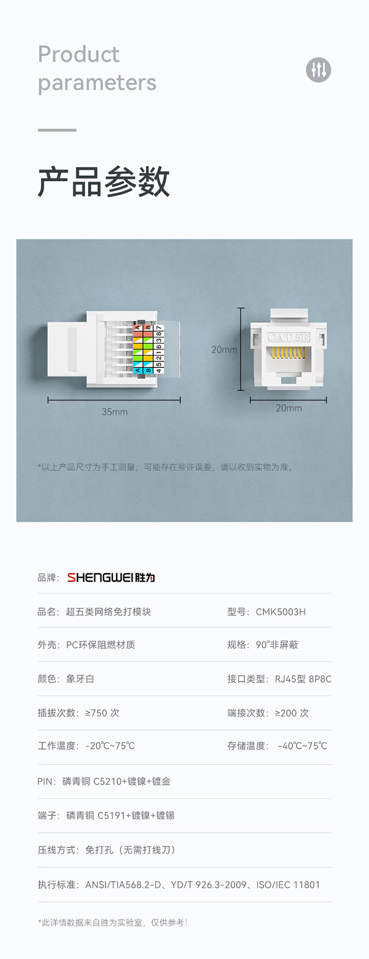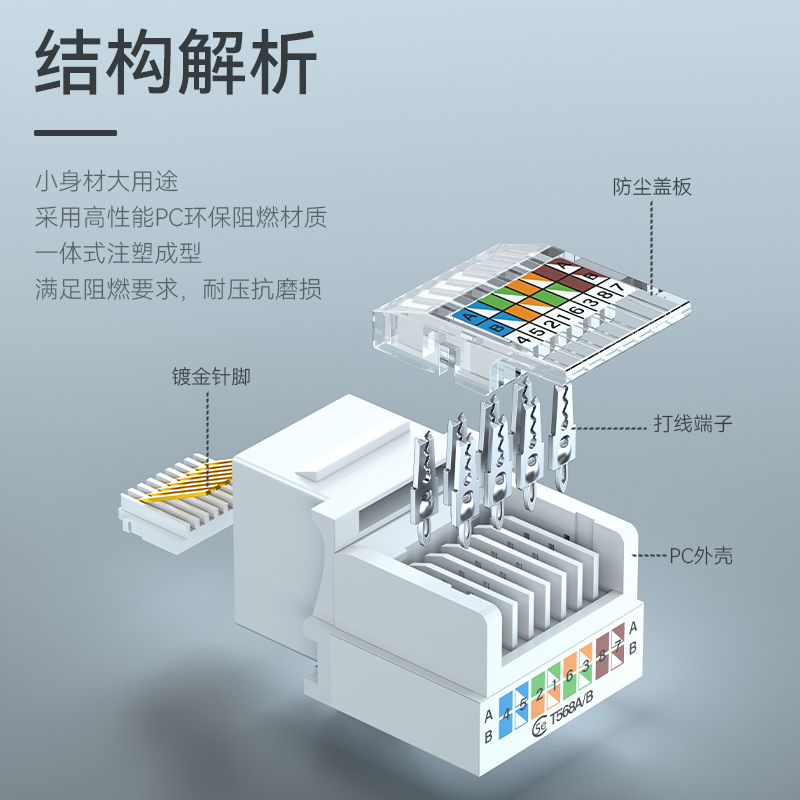 超五類網(wǎng)絡(luò)模塊 CAT5e網(wǎng)線面板連接器非屏蔽 RJ45水晶頭電腦插座連接頭直通頭 單個裝CMK5004H