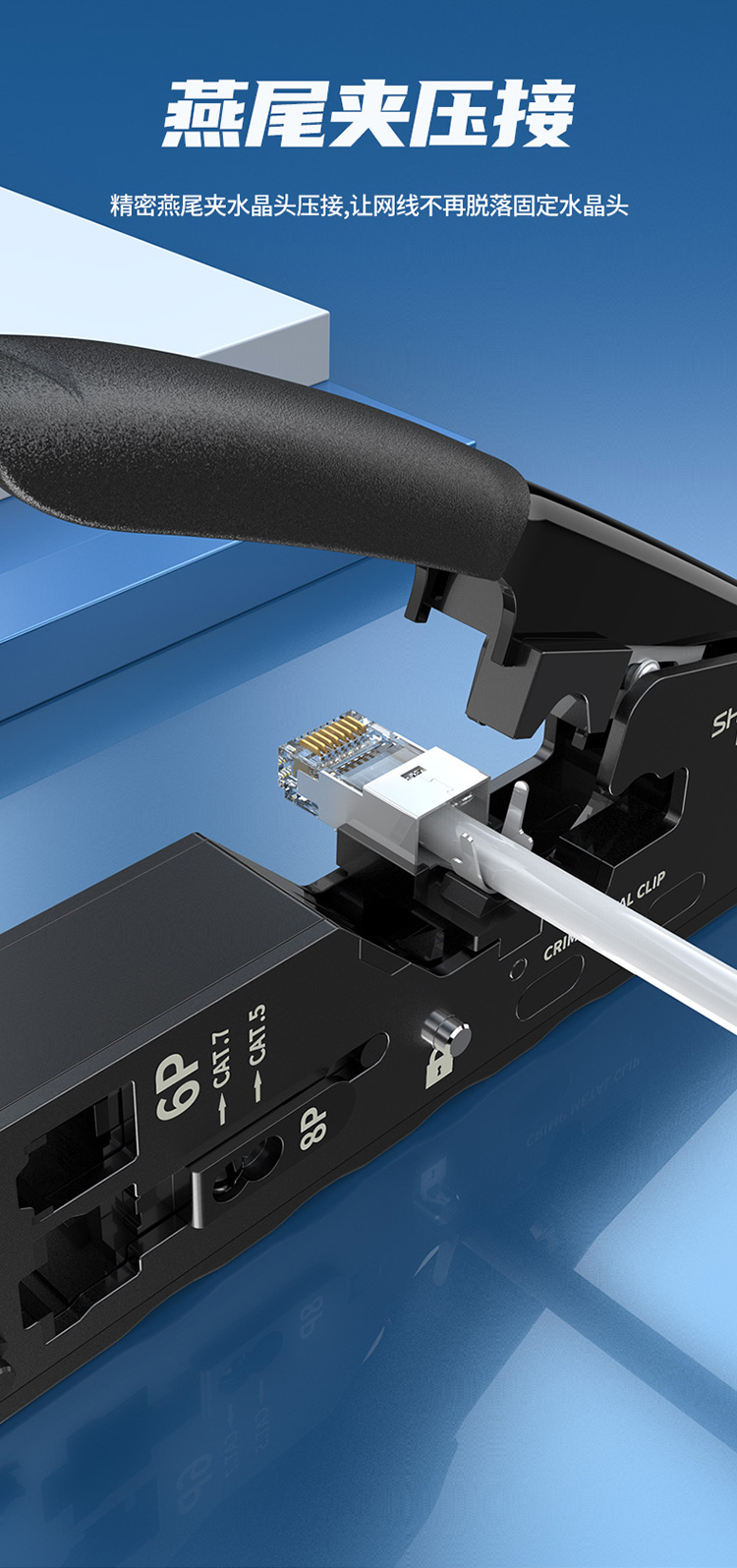 功能:壓制超五類/六類/七類,6P6C/6P4C/6P2C電話水晶頭