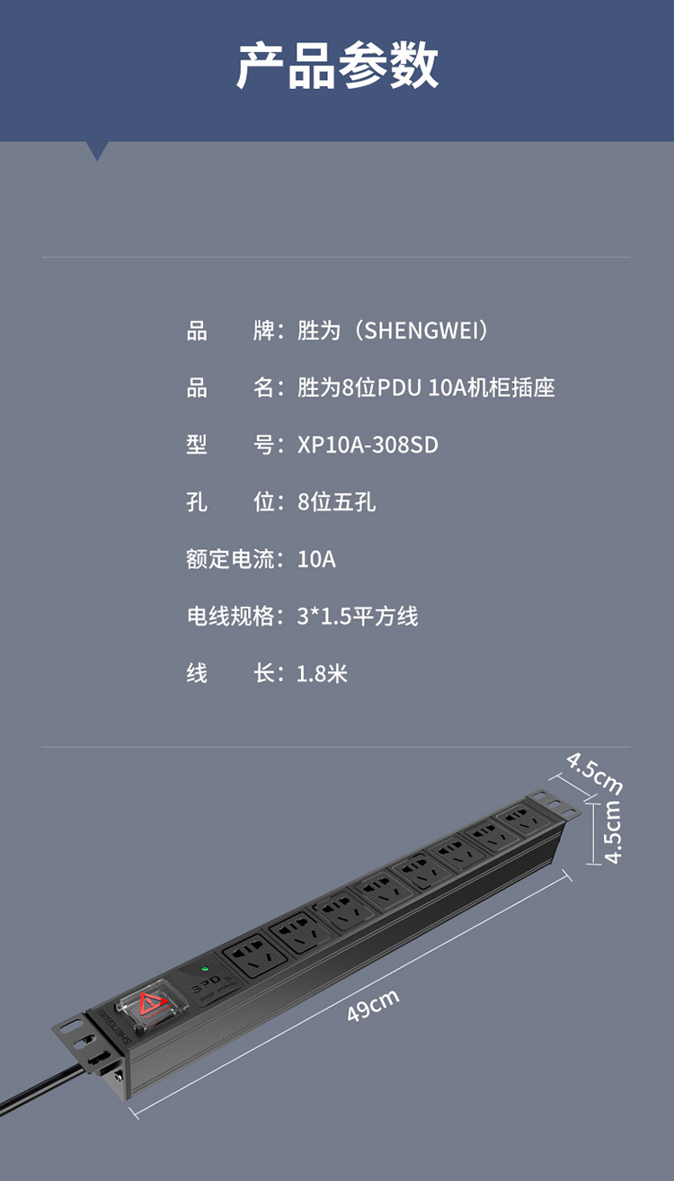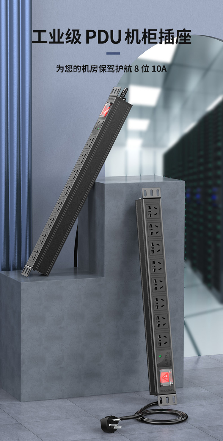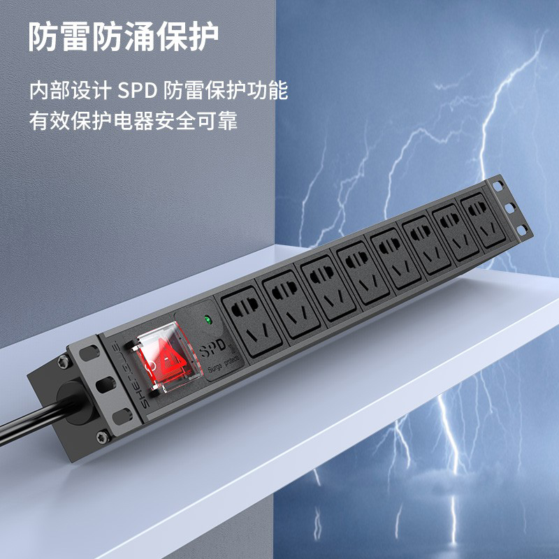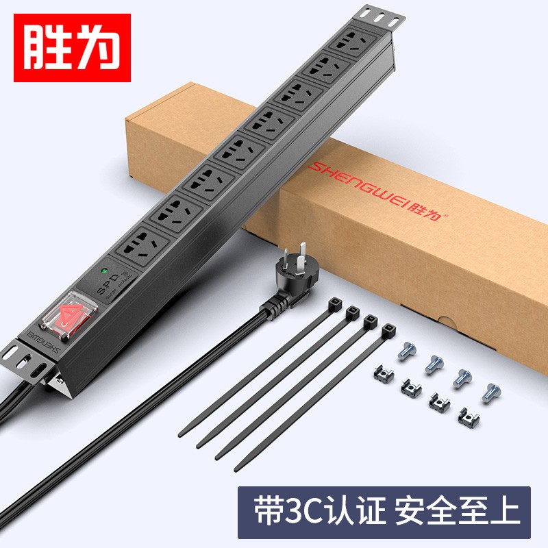 PDU機(jī)柜插座 8位10A總控防雷保護(hù) 勝為國標(biāo)工程機(jī)房機(jī)柜專用多功能插座插排接線板 XP10A-308SD