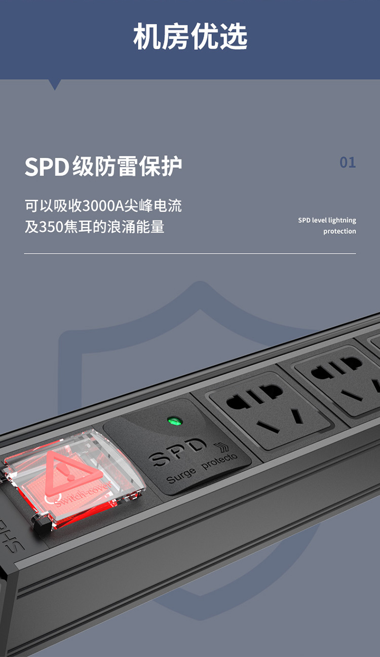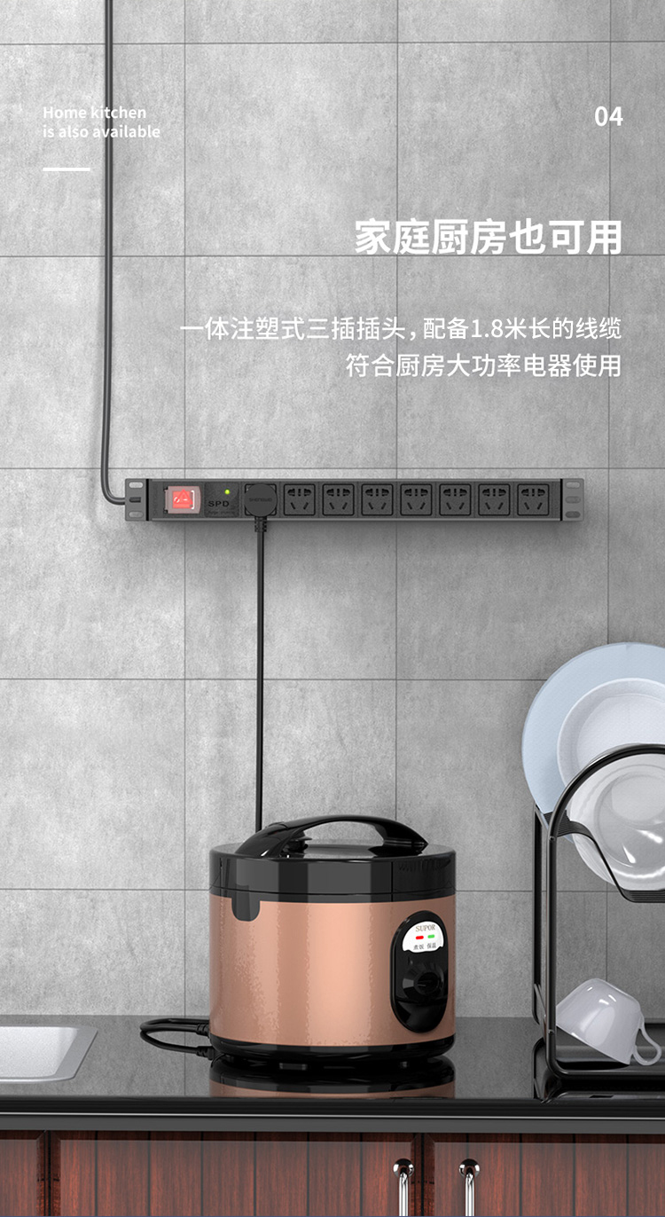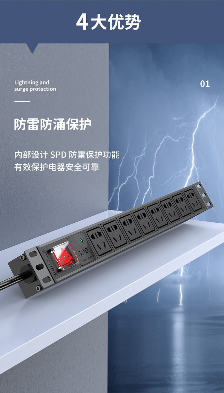 PDU機(jī)柜插座 8位10A總控防雷保護(hù) 勝為國標(biāo)工程機(jī)房機(jī)柜專用多功能插座插排接線板 XP10A-308SD