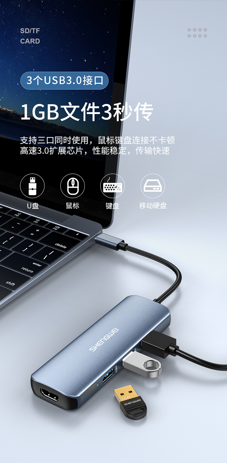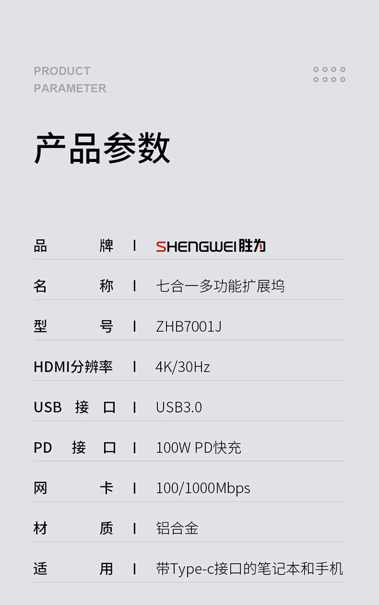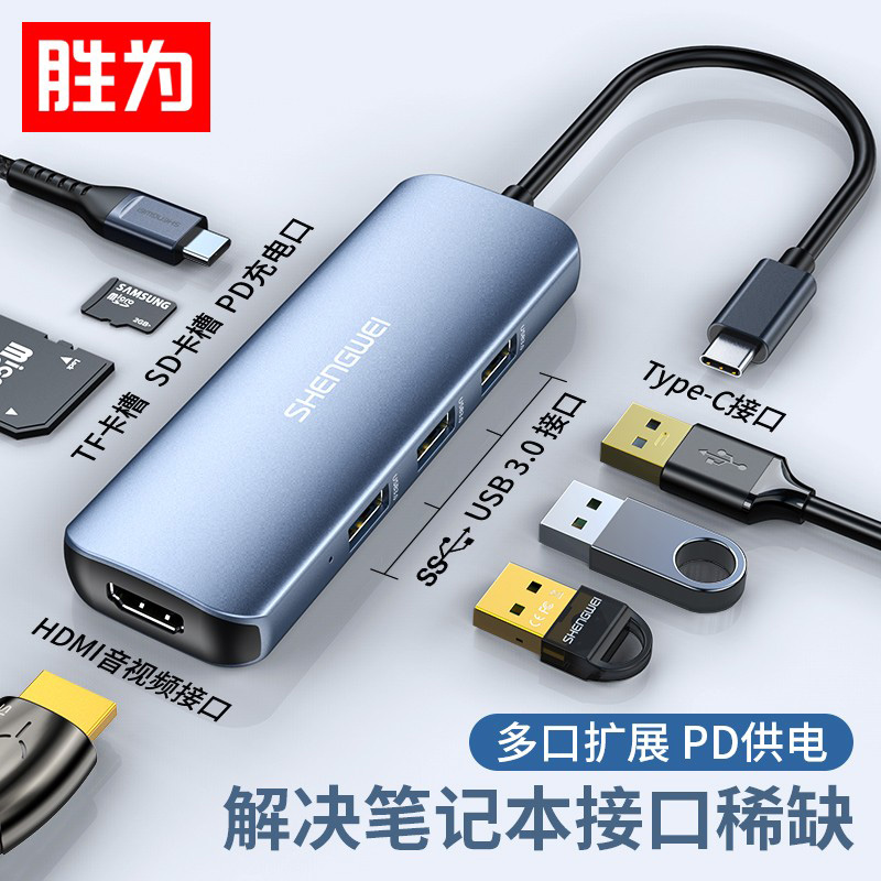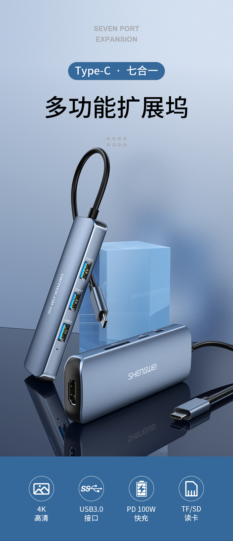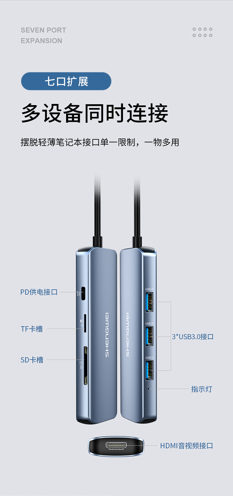 Type-C擴(kuò)展塢七合一 適用蘋果MacBook華為電腦拓展塢轉(zhuǎn)HDMI線轉(zhuǎn)換器 勝為轉(zhuǎn)接頭筆記本投屏 ZHB7001J