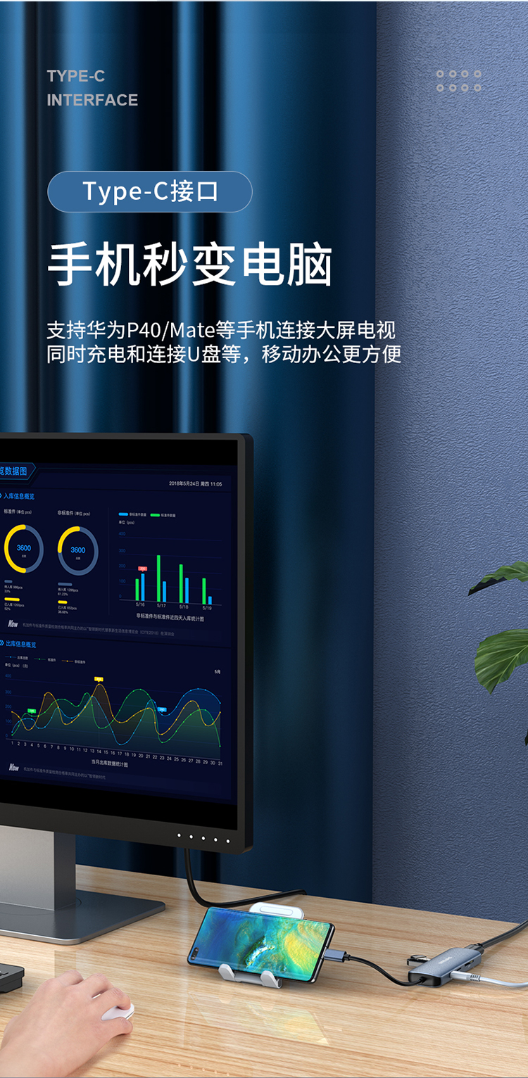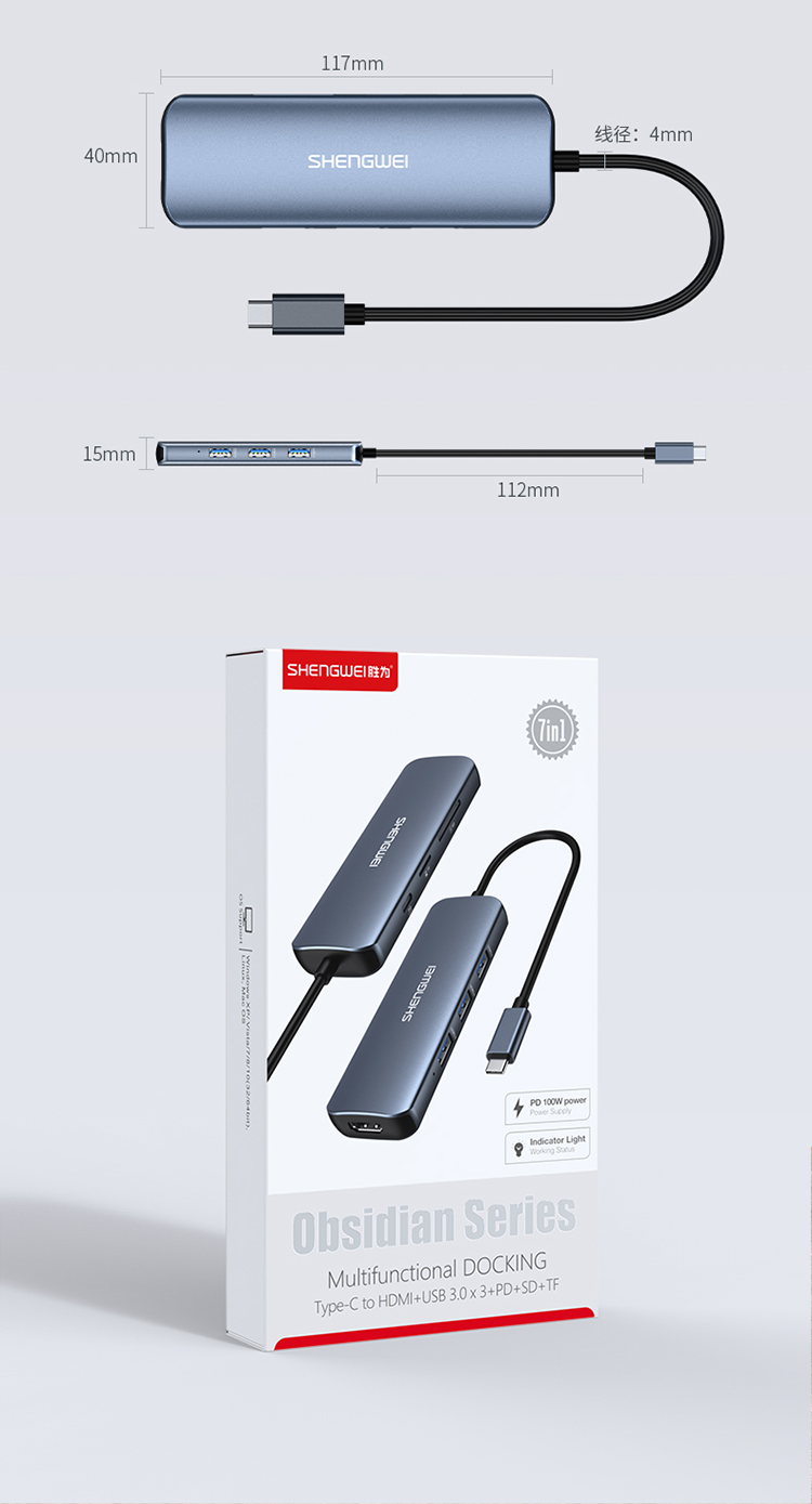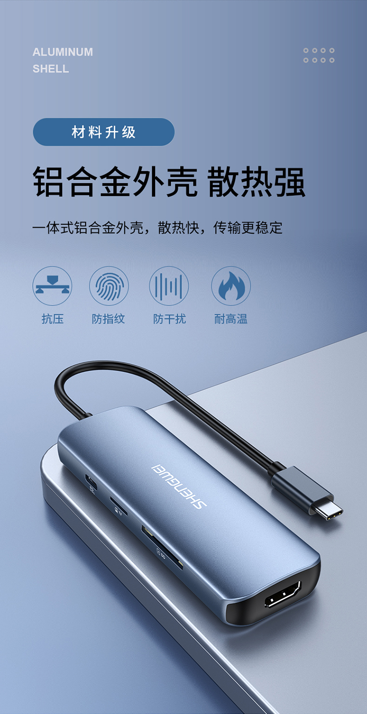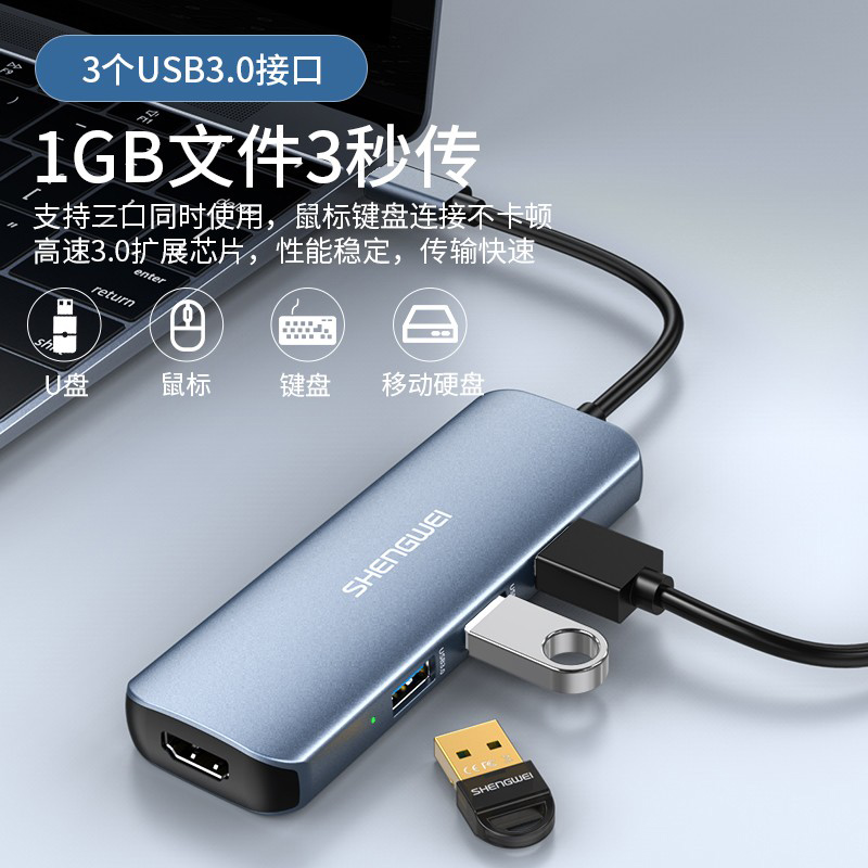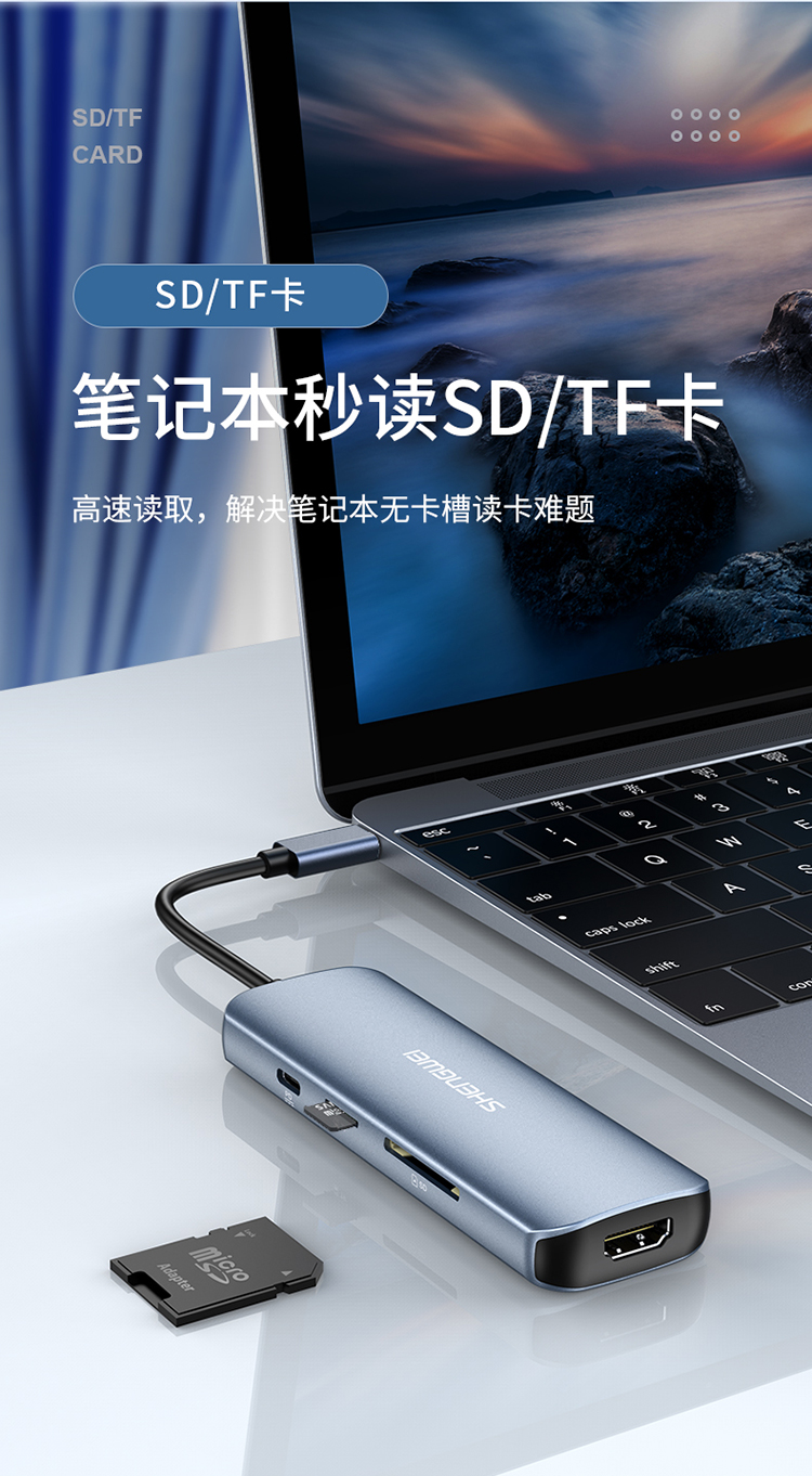 Type-C擴(kuò)展塢七合一 適用蘋果MacBook華為電腦拓展塢轉(zhuǎn)HDMI線轉(zhuǎn)換器 勝為轉(zhuǎn)接頭筆記本投屏 ZHB7001J