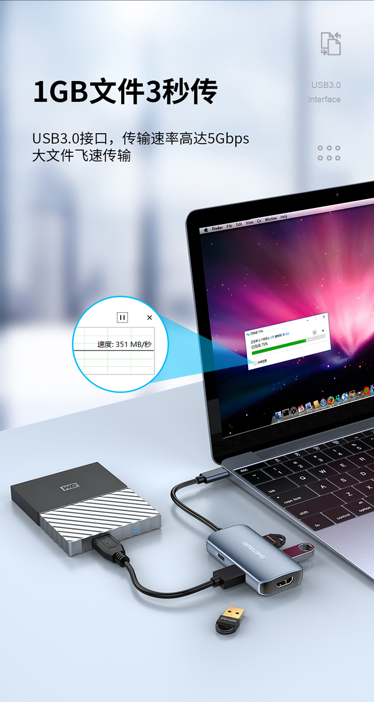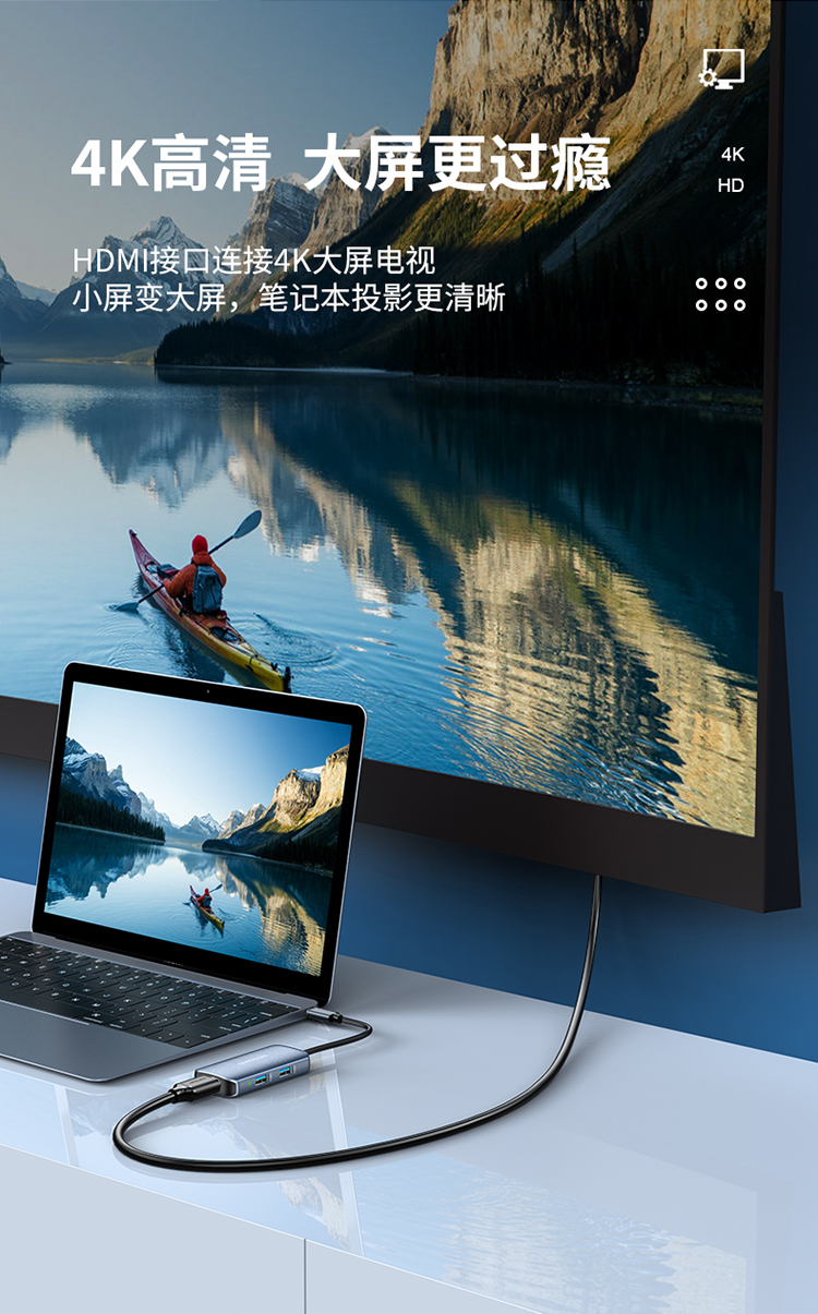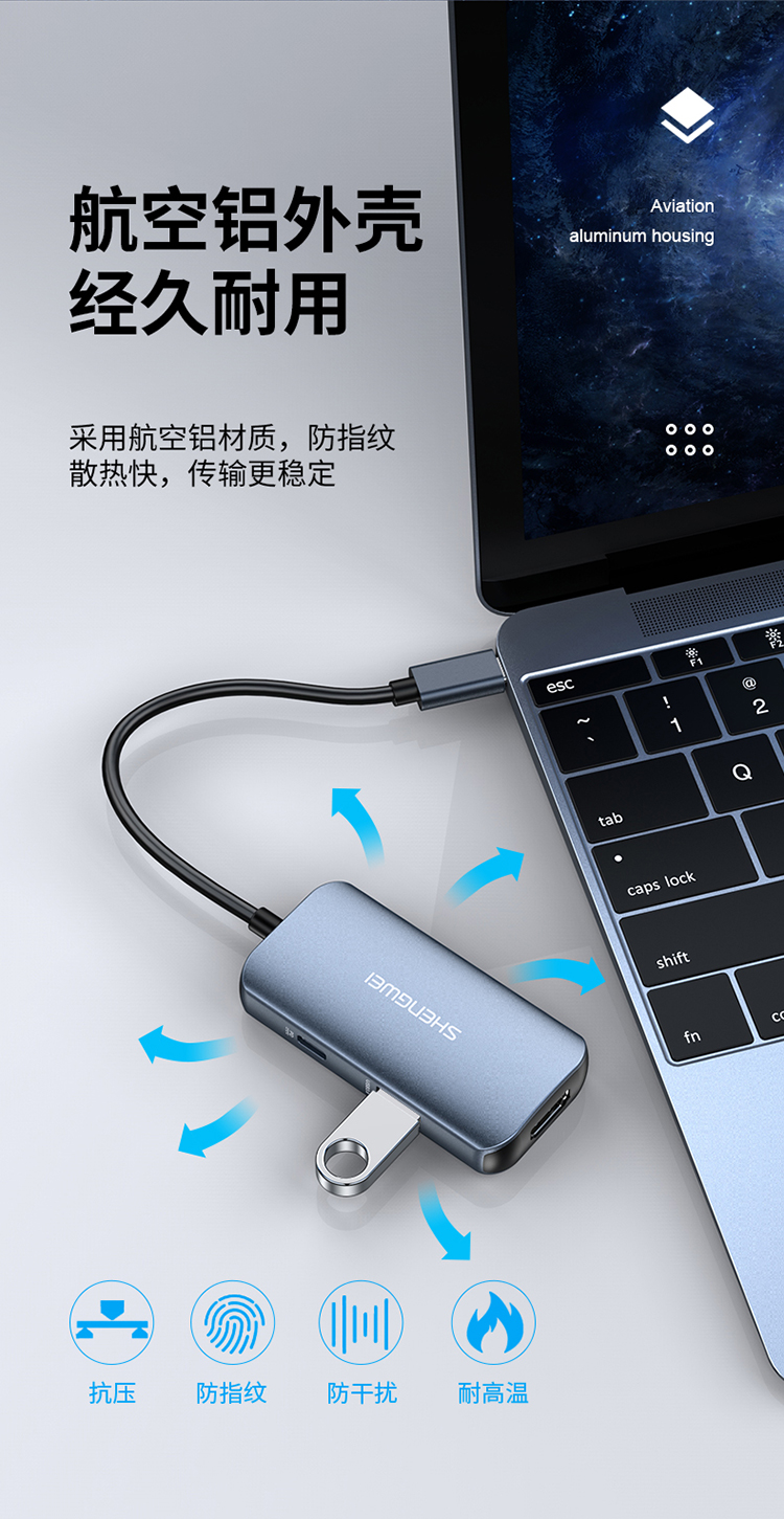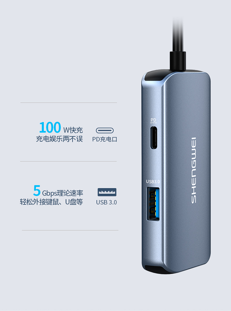 Type-c擴展塢五合一 USB-C轉(zhuǎn)HDMI轉(zhuǎn)換器 適用于華為蘋果電腦macbook筆記本 ZHB5002J