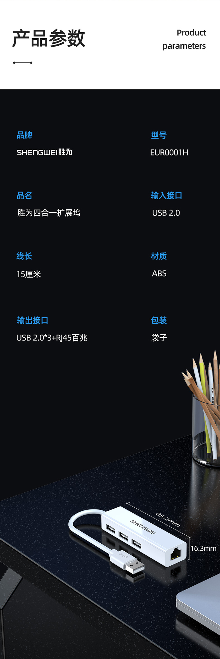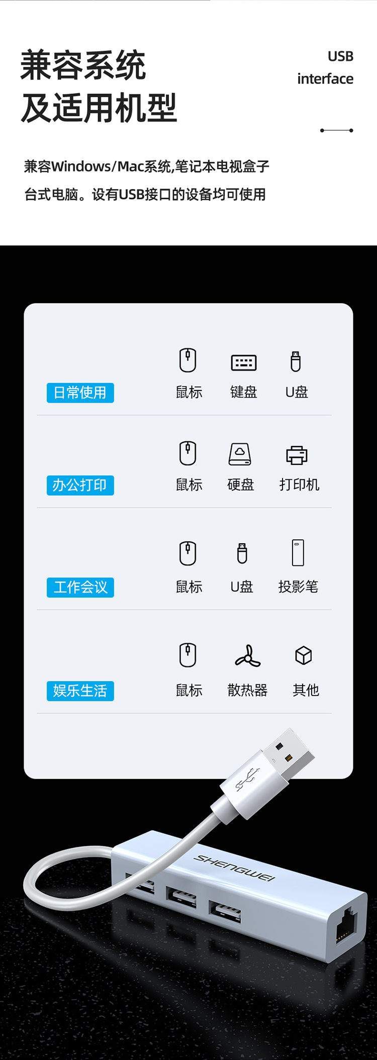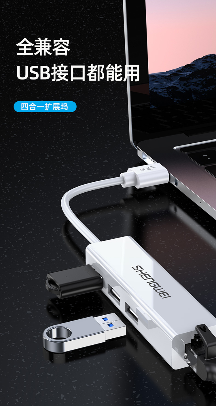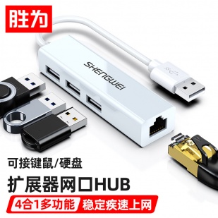 USB分線器轉(zhuǎn)網(wǎng)口有線網(wǎng)卡RJ45轉(zhuǎn)換器 勝為拓展塢四合一適用蘋果mac華為電腦HUB擴展塢 EUR0001H