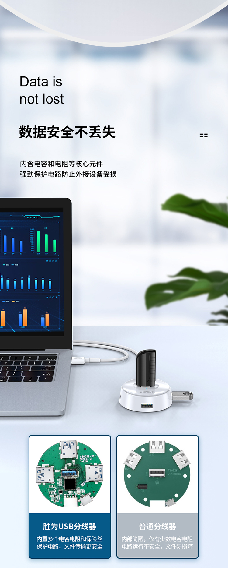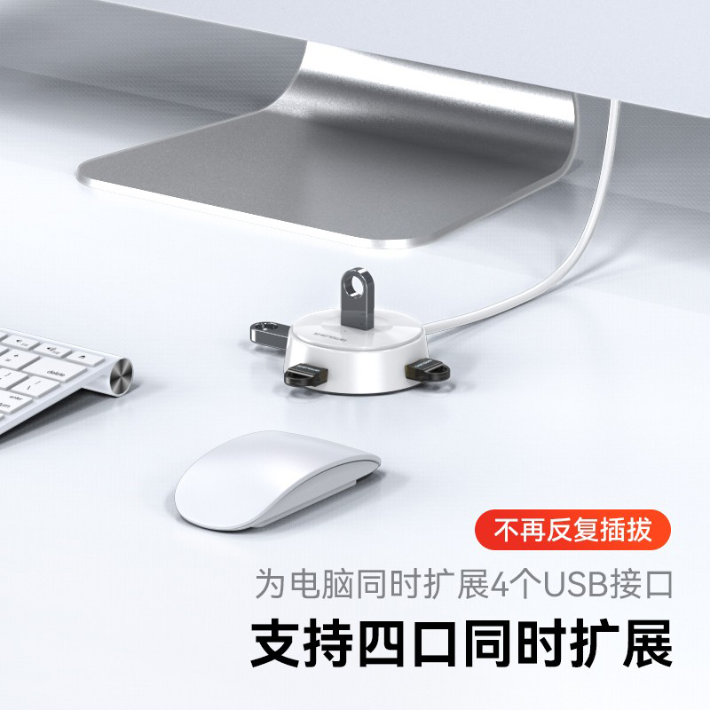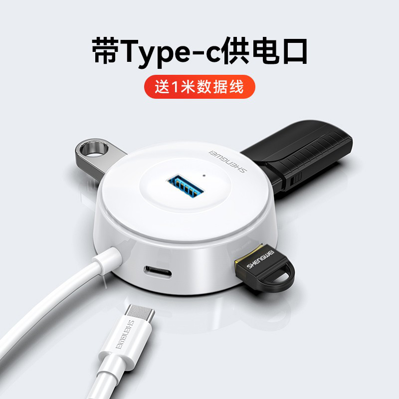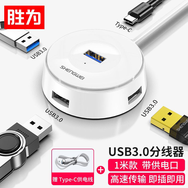 USB分線器 3.0高速4口HUB拓展塢集線器臺(tái)式機(jī) 勝為 四合一延長(zhǎng)線轉(zhuǎn)接器帶電源接口 白色1米 AUU0001J