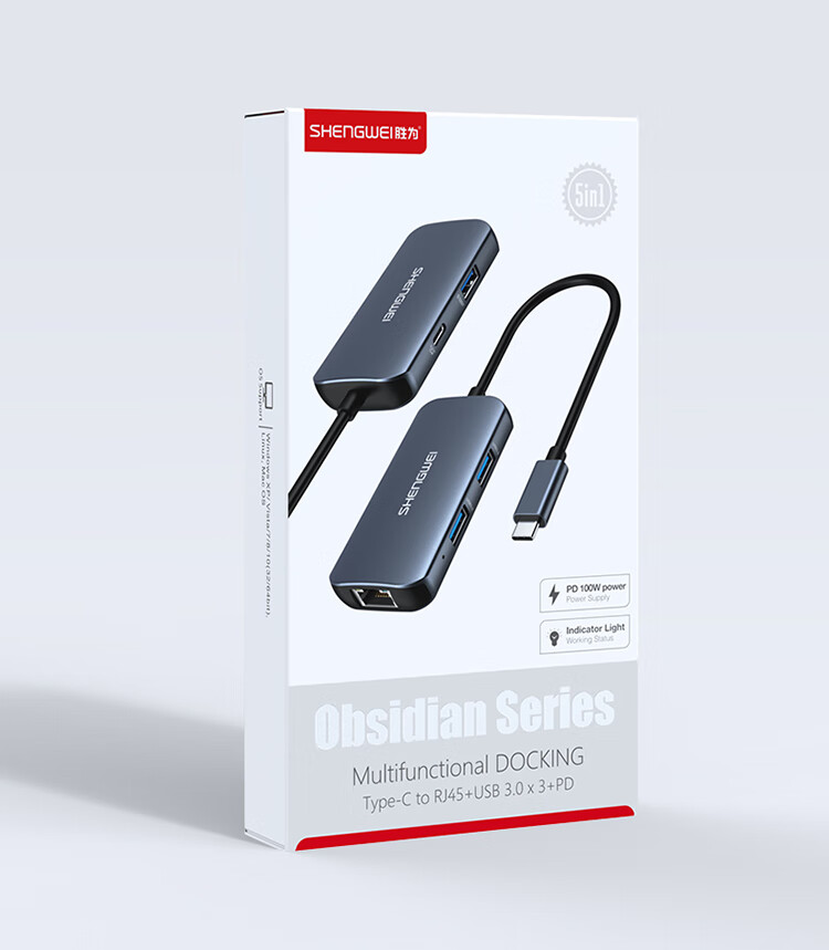 Type-c擴(kuò)展塢五合一 USB-C分線器適用于華為蘋果筆記本電腦擴(kuò)展 勝為RJ45網(wǎng)口轉(zhuǎn)換器 ZHB5011J