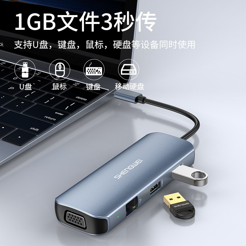七合一擴(kuò)展塢 USB-C轉(zhuǎn)HDMI/VGA轉(zhuǎn)接頭投屏蘋(píng)果華為Macbook電腦轉(zhuǎn)換器千兆網(wǎng)口 勝為 ZHB7012J