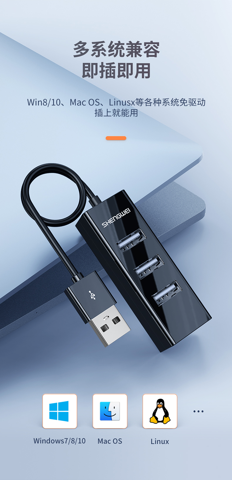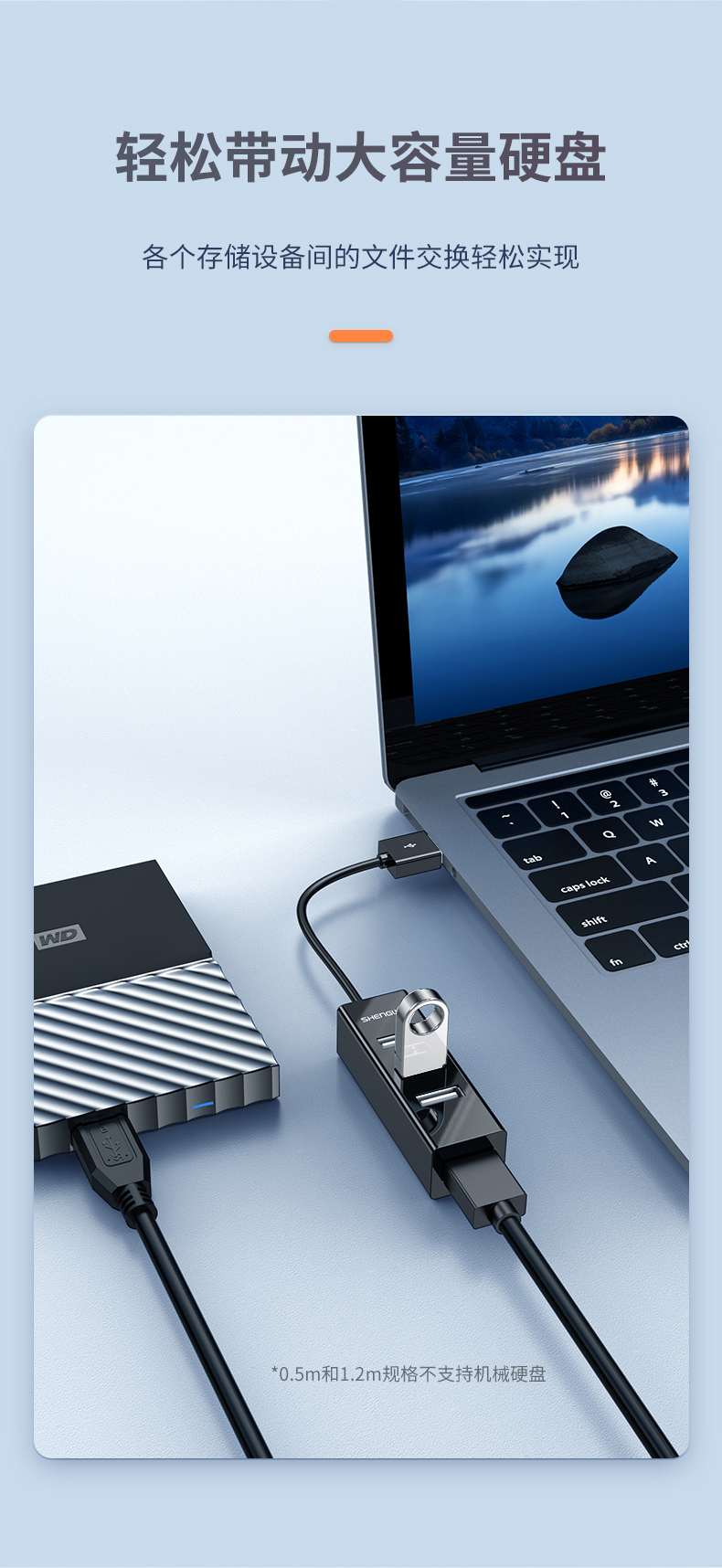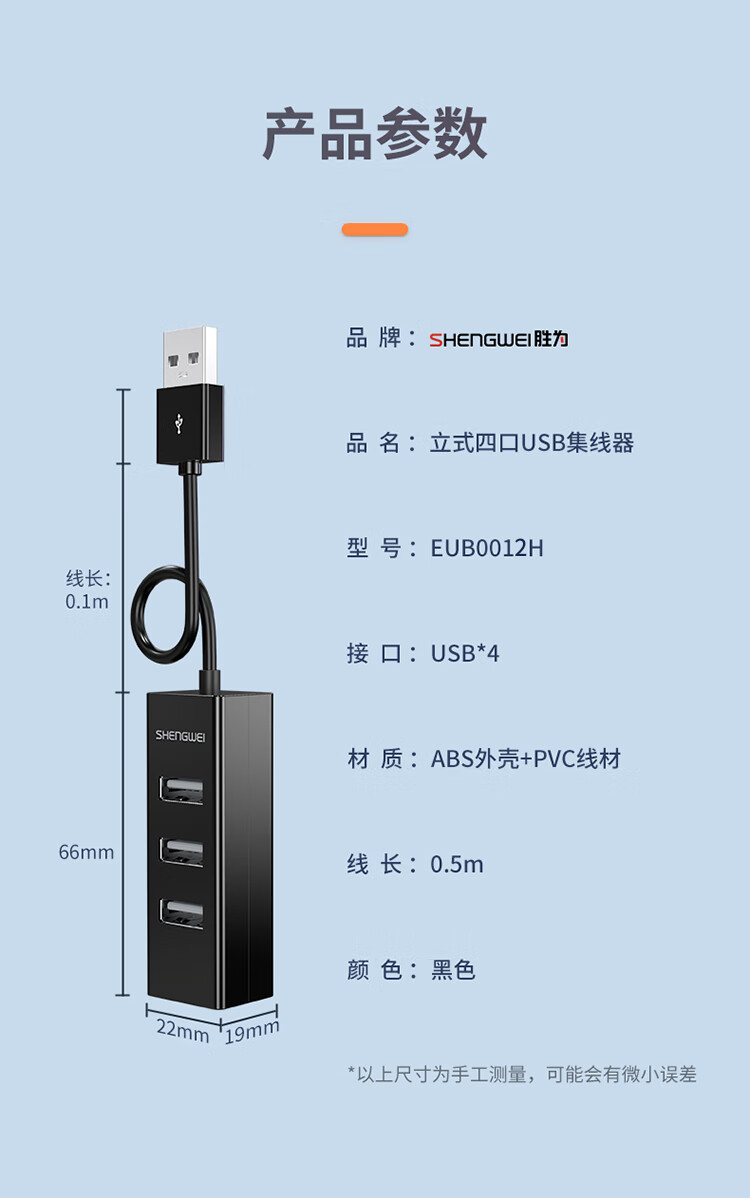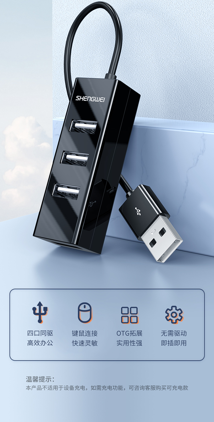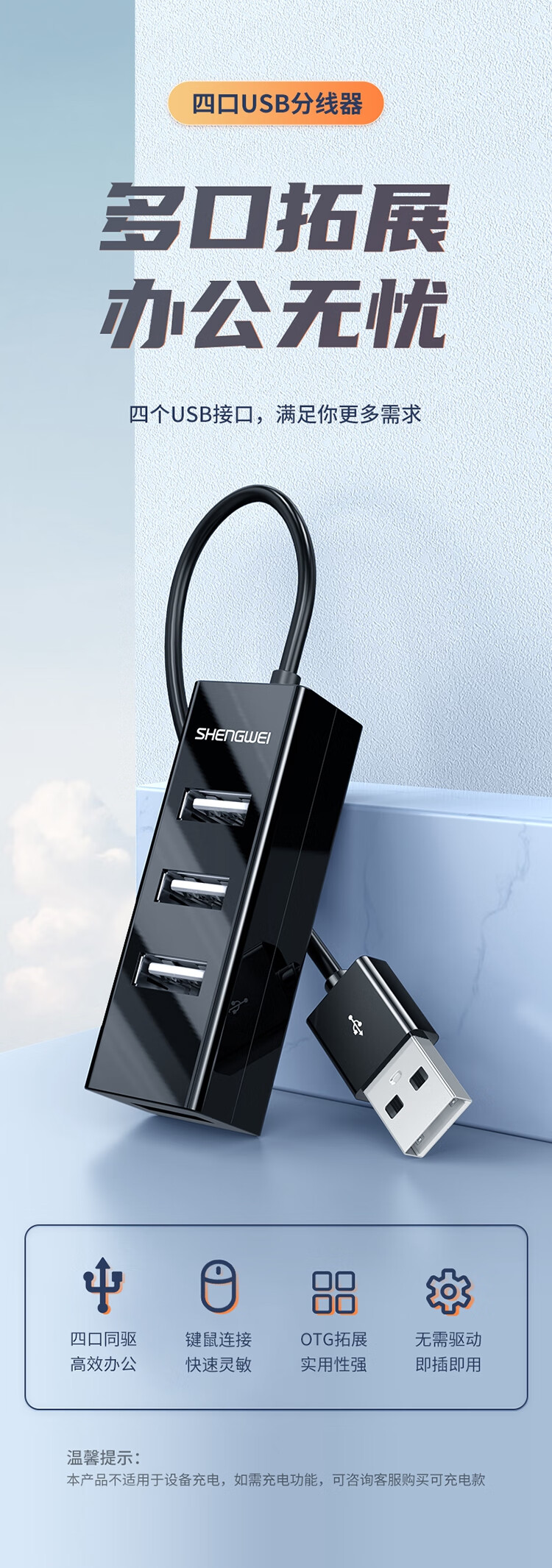 USB分線器 4口HUB拓展塢集線器擴(kuò)展塢便攜式筆記本臺(tái)式電腦四合一多接口 勝為轉(zhuǎn)換器延長(zhǎng)線 0.5m EUB0012H