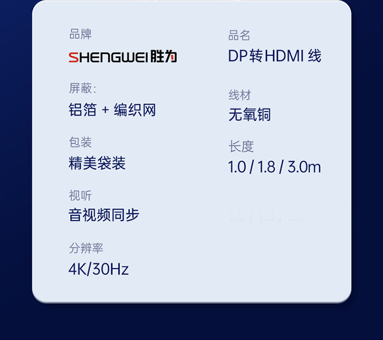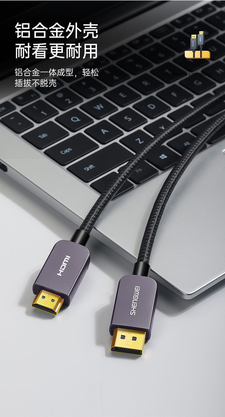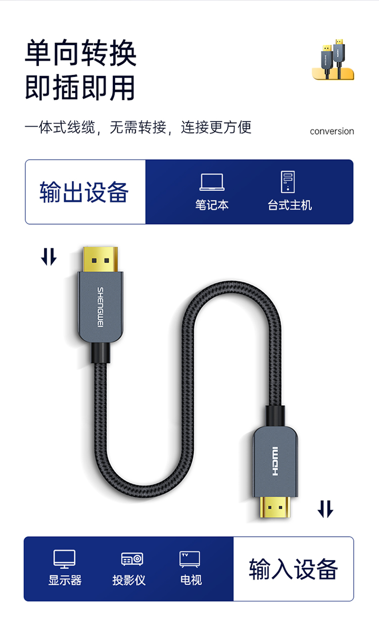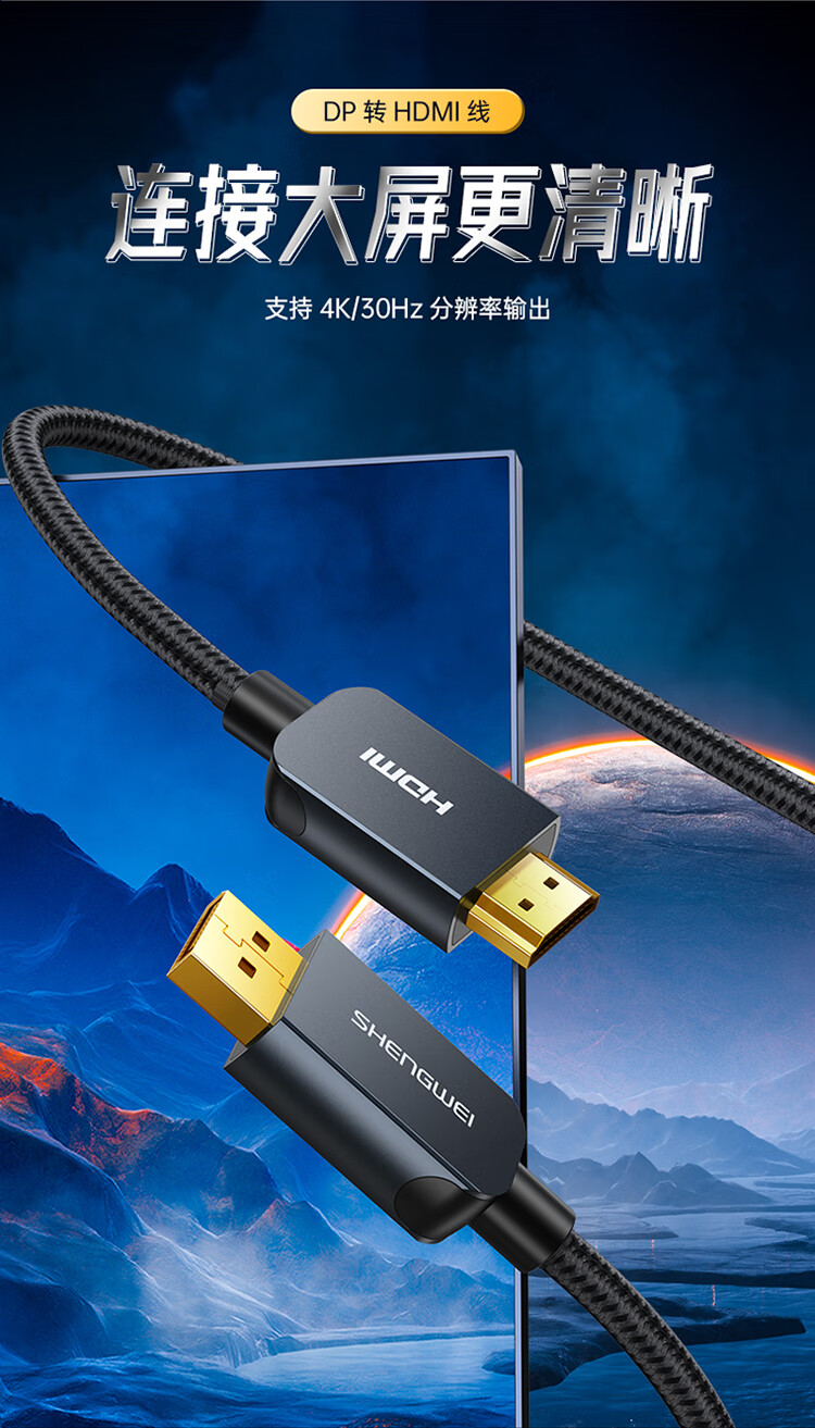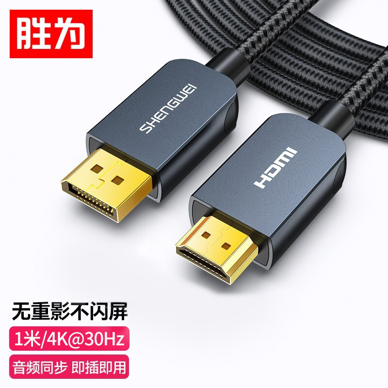 DP轉(zhuǎn)HDMI轉(zhuǎn)接線 4K高清轉(zhuǎn)換線器電腦顯示器筆記本投影儀視頻連接線 灰色1米 勝為 ADH0010J
