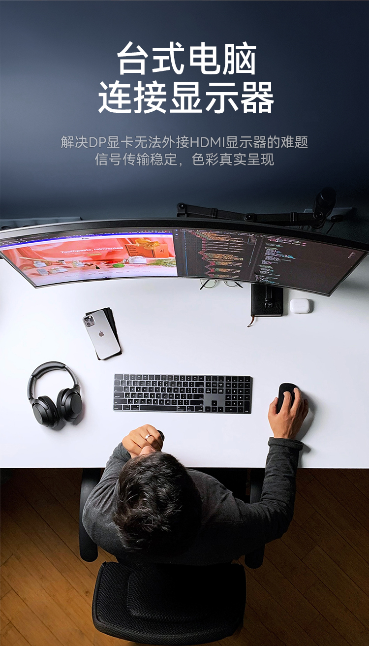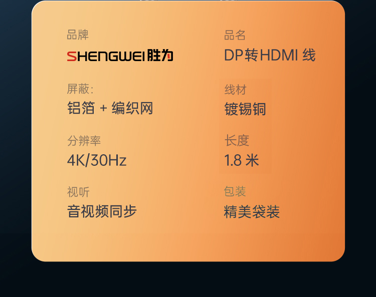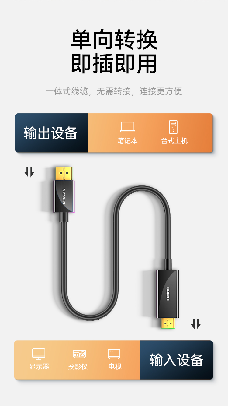 DP轉(zhuǎn)HDMI轉(zhuǎn)接線 4K高清連接線1.2版 DisplayPort轉(zhuǎn)HDMI視頻線 電腦接電視顯示器轉(zhuǎn)換器線 1.8米 勝為 ADH0018G