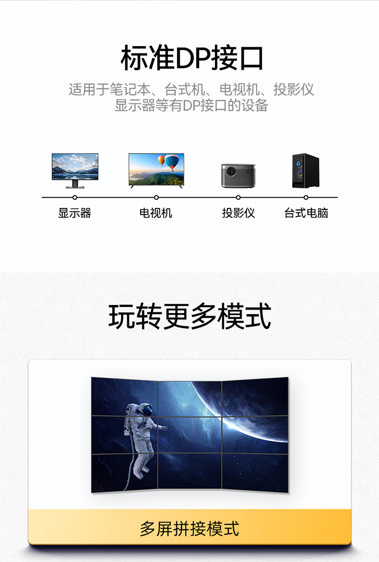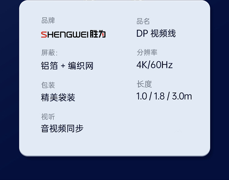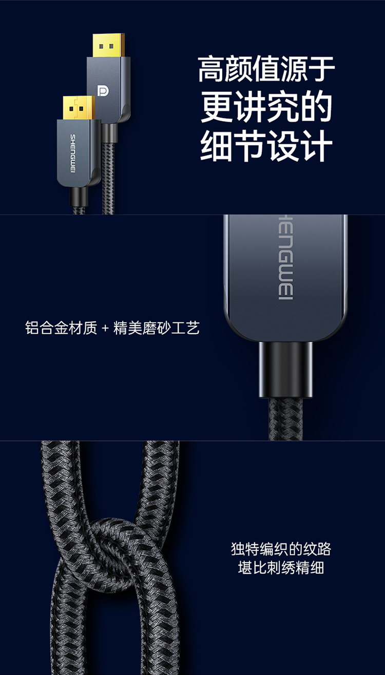 DP線1.2版4K高清視頻連接線 高清DisplayPort公對(duì)公 臺(tái)式機(jī)電腦顯卡筆記本連接顯示器視頻線1米 勝為 ADP0010J
