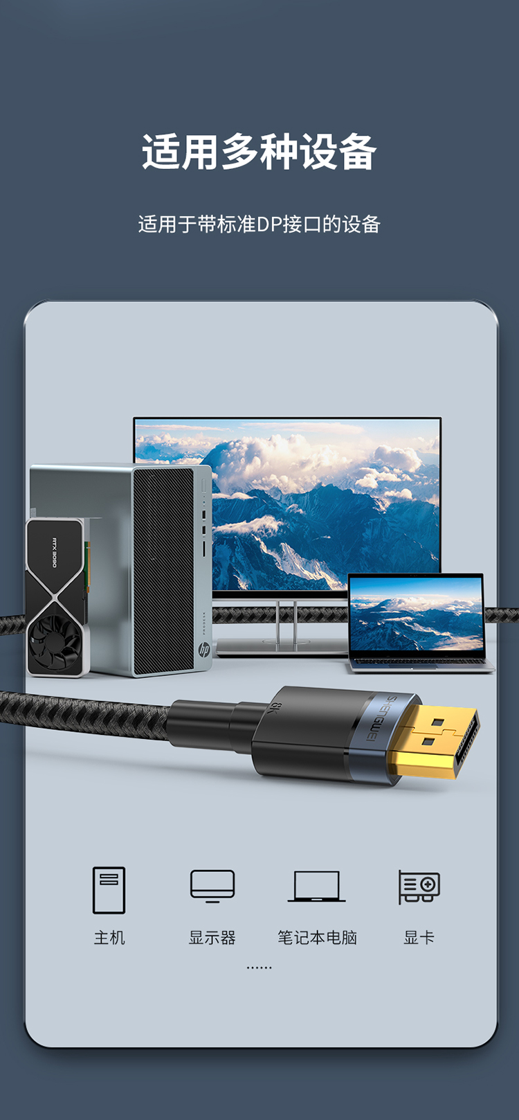 DP線1.4版8K高清線4K144Hz 勝為公對公DisplayPort線電腦游戲電競顯示器視頻線1米 ADP0110J